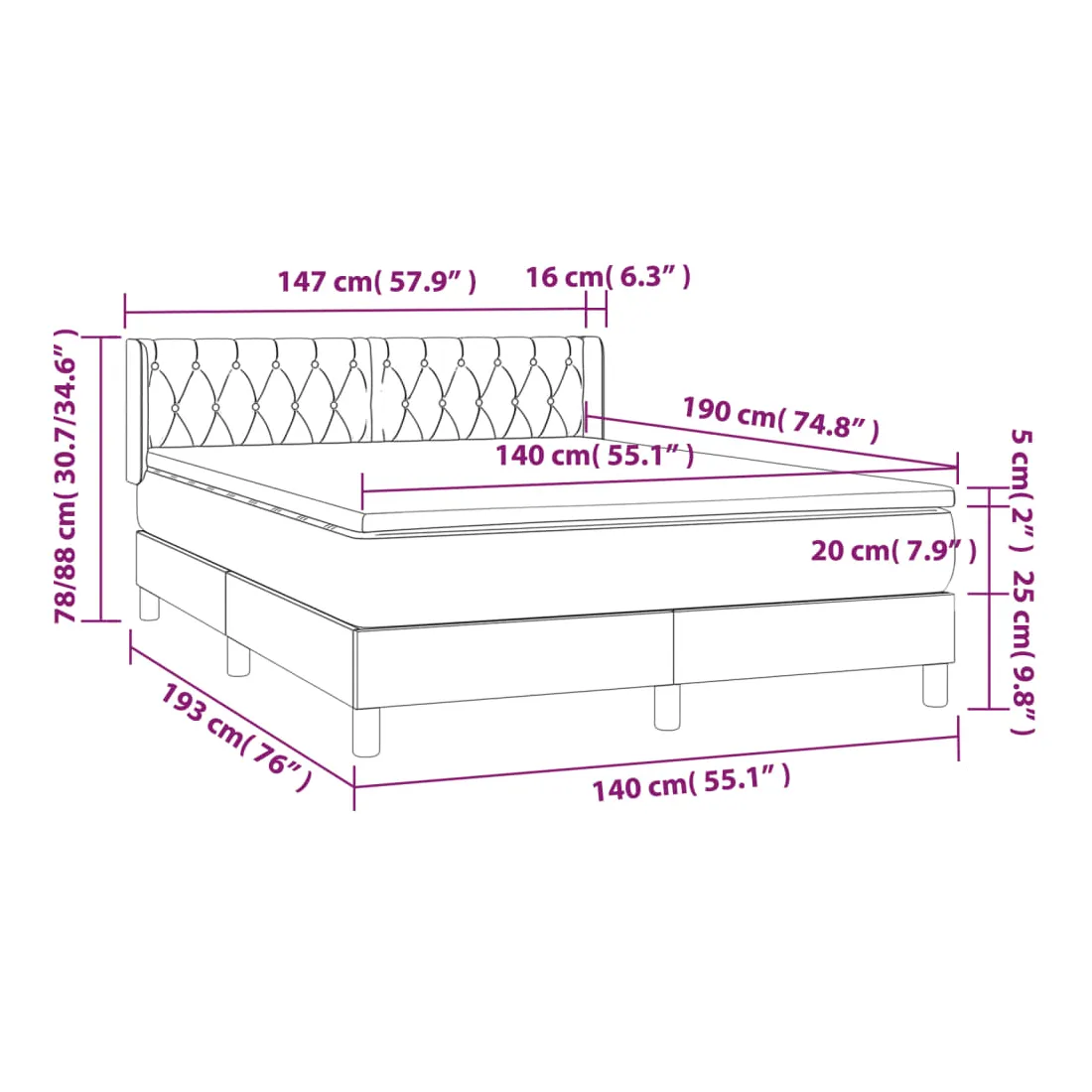 • Dimensions : 140 x 190 x 20 cm (l x L x H)