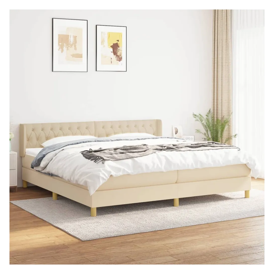 Sommier à lattes de lit avec matelas Crème 200x200 cm Tissu