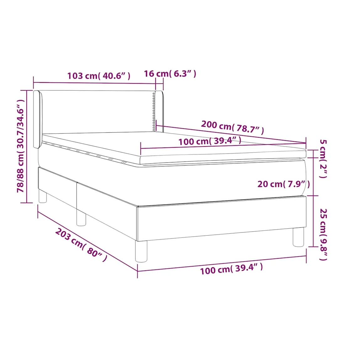Utilisez ce lit à sommier pour profiter d'une nuit de sommeil réparatrice ! Il vous offre une relaxation maximale et un sommeil agréable. Velours doux : le velours est un tissu doux et luxueux qui se reconnaît à son tas dense de fibres uniformément coupées qui ont une touche lisse. Le tissu en velours présente un toucher doux distinctif, ce qui le rend confortable au toucher.Tête de lit pratique : la tête de lit est réglable en hauteur selon vos préférences. La tête de lit vous offre un excellent soutien du dos lorsque vous êtes assis dans votre lit pour lire ou regarder la télévision.Matelas à ressorts ensachés : le ressort ensaché individuel intégré est connu pour sa très haute qualité tout en assurant un haut niveau de durabilité et d'adaptabilité. Il peut absorber efficacement le bruit et les chocs causés par les sauts et les rotations.Support moyen-dur : ce matelas de lit offre une stabilité accrue et juste le niveau de fermeté sans sacrifier le confort. Il est donc idéal pour les personnes qui dorment sur le dos ou sur le ventre.Protège-matelas doux pour la peau : le protège-matelas est recouvert d'un tissu résistant et doux pour la peau, ce qui le rend souple et confortable. Remarque :Pour des raisons d'hygiène, le matelas ne peut pas être retourné si l'emballage est retiré ou ouvert.Chaque produit est livré avec un manuel de montage dans la boîte pour un montage facile.