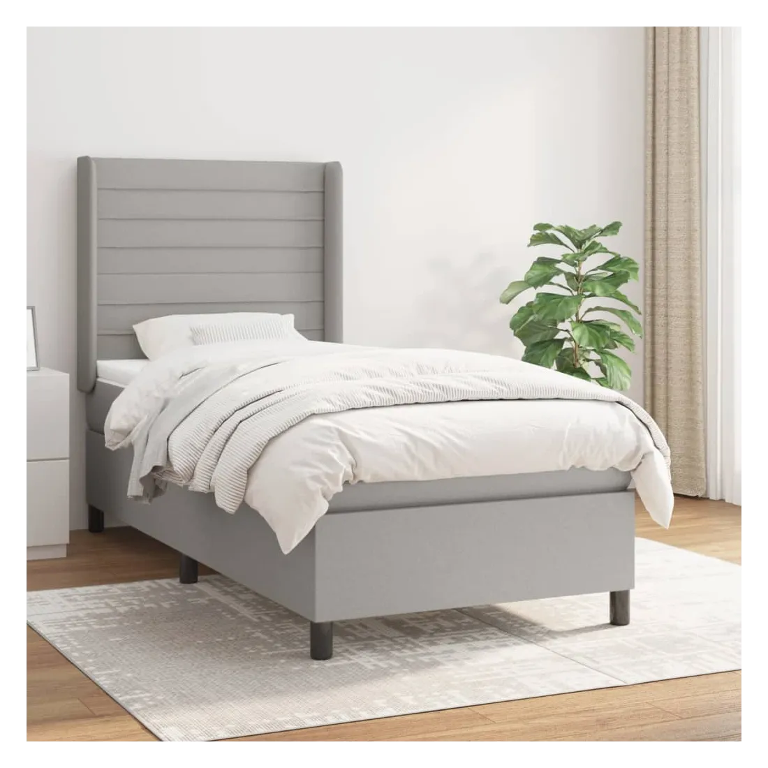 Sommier à lattes de lit avec matelas Gris clair 100x200cm Tissu