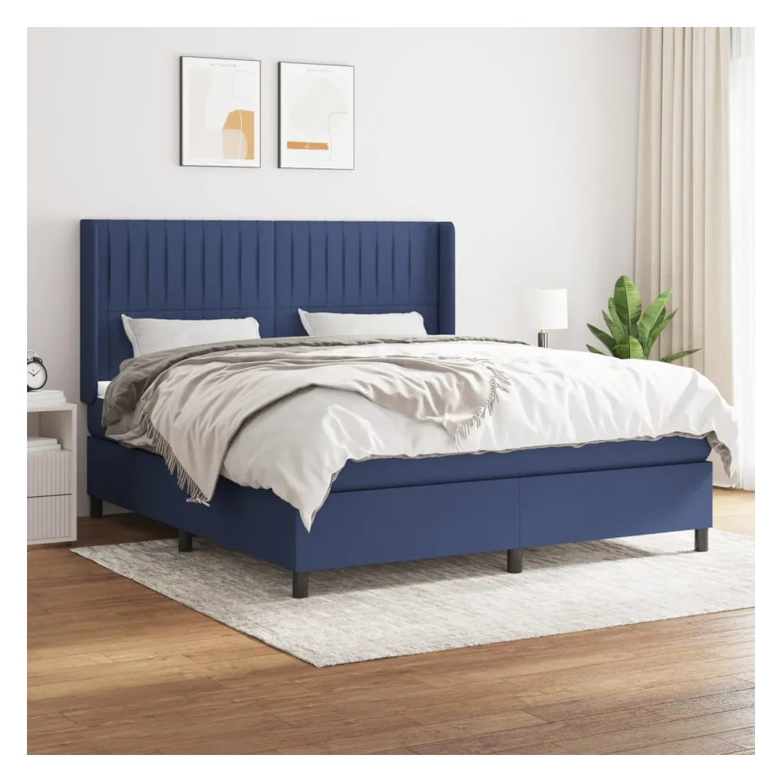Sommier à lattes de lit avec matelas Bleu 160x200 cm Tissu