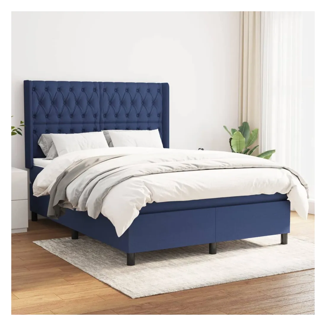 Sommier à lattes de lit avec matelas Bleu 140x190 cm Tissu