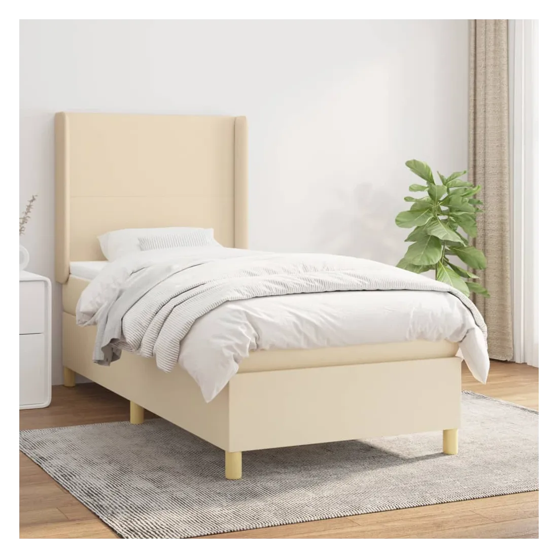 Sommier à lattes de lit et matelas Crème 90x190 cm Tissu