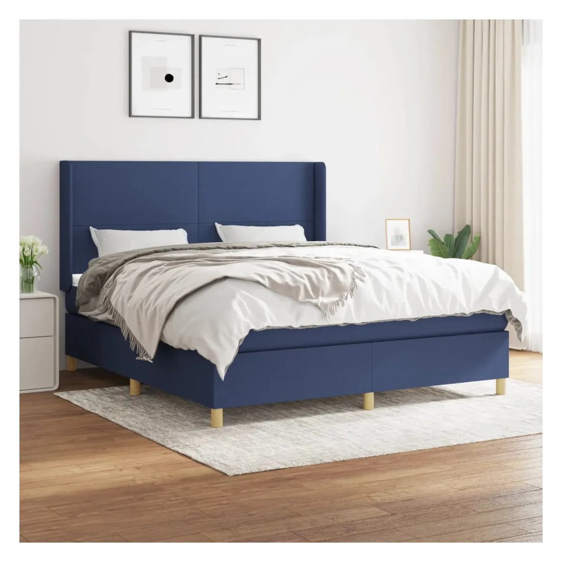 Sommier à lattes de lit avec matelas Bleu 180x200 cm Tissu