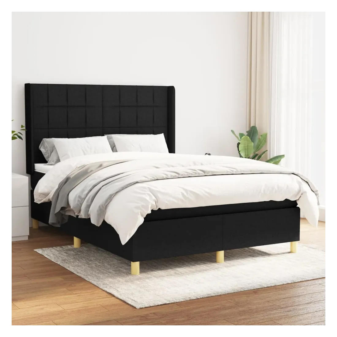 Sommier à lattes de lit avec matelas Noir 140x190 cm Tissu