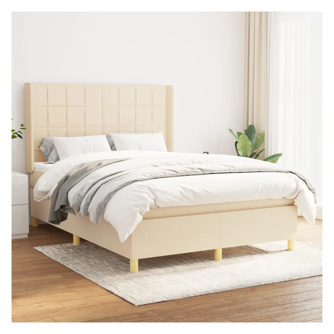 Sommier à lattes de lit avec matelas Crème 140x200 cm Tissu