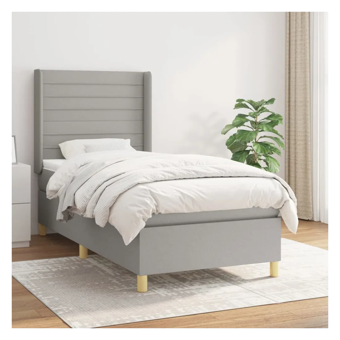 Sommier à lattes de lit avec matelas Gris clair 90x200 cm Tissu