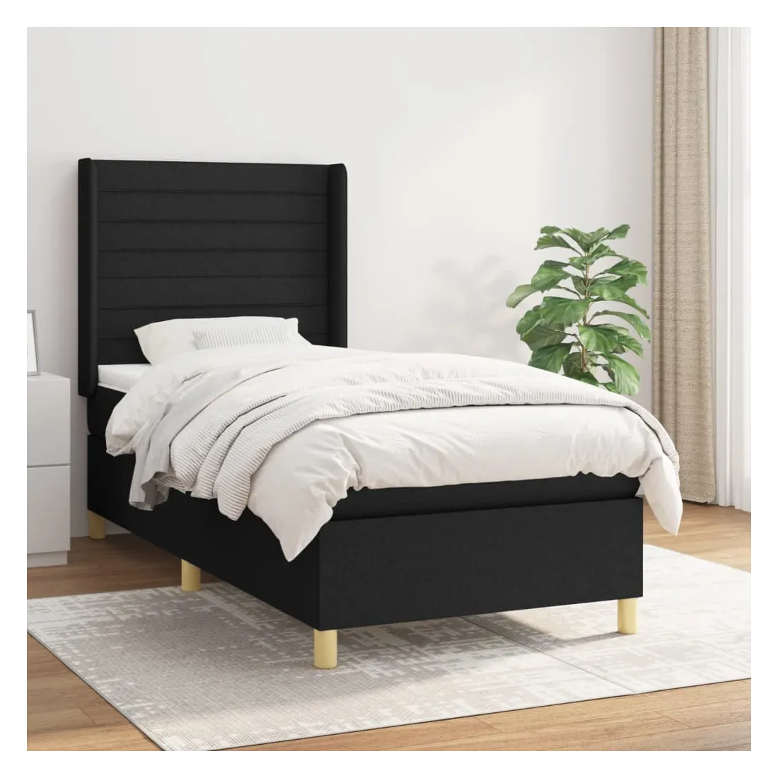 Sommier à lattes de lit avec matelas Noir 100x200 cm Tissu