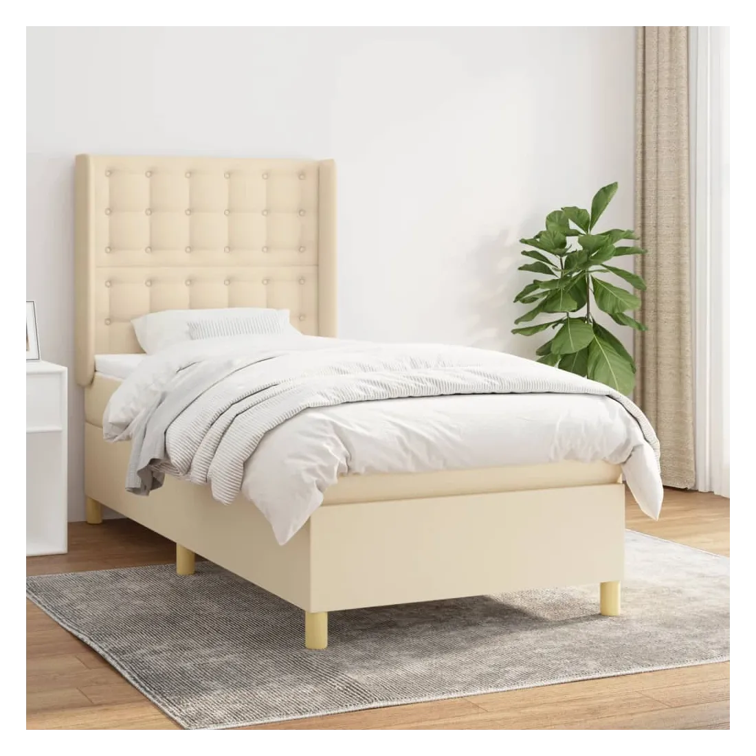 Sommier à lattes de lit avec matelas Crème 90x200 cm Tissu