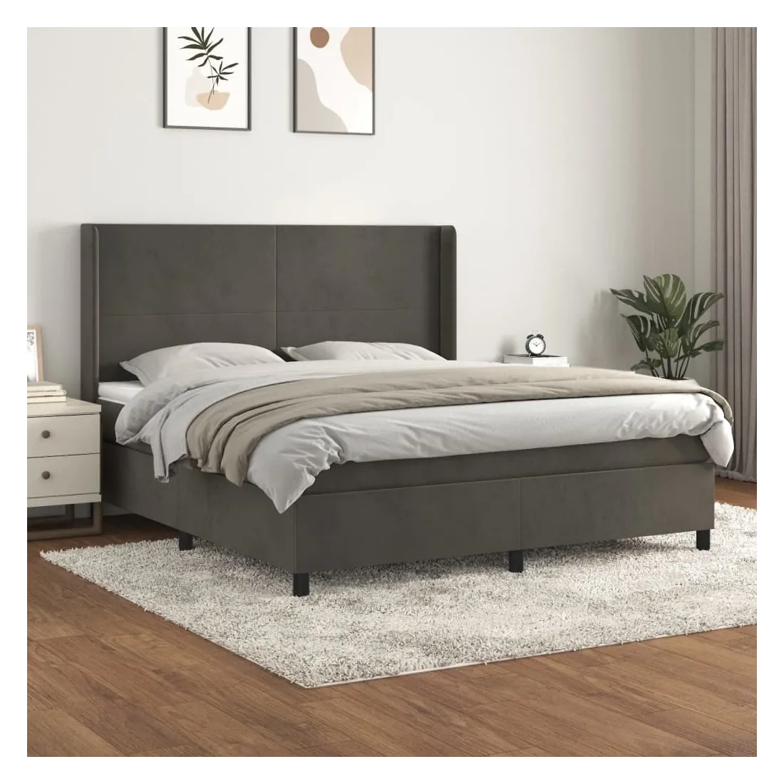 Sommier à lattes de lit et matelas Gris foncé 160x200cm Velours