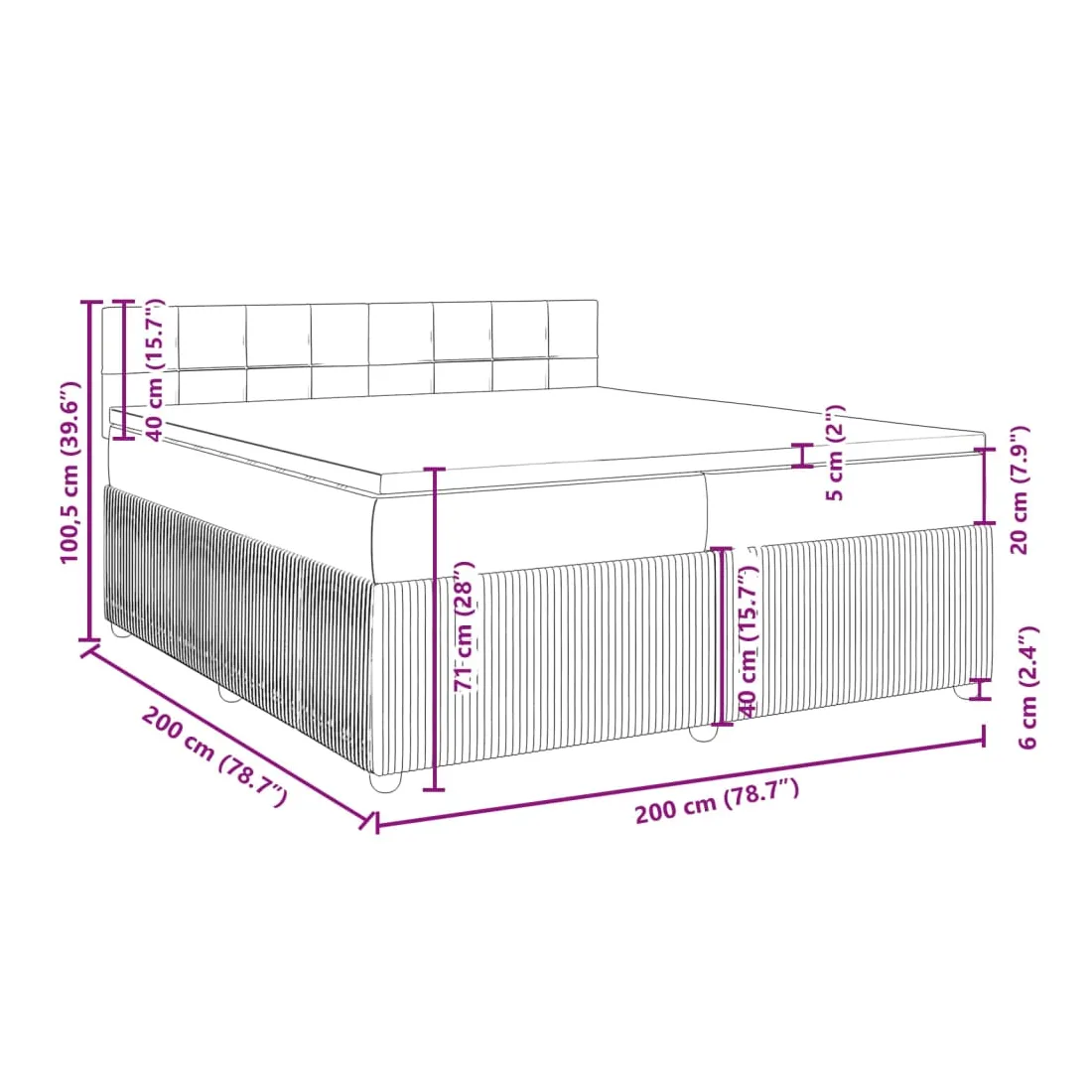 Utilisez ce lit à sommier pour profiter d'une nuit de sommeil réparatrice ! Il vous offre une relaxation maximale et un sommeil agréable. Velours doux : le velours est un tissu doux et luxueux qui se reconnaît à son tas dense de fibres uniformément coupées qui ont une touche lisse. Le tissu en velours présente un toucher doux distinctif, ce qui le rend confortable au toucher.Tête de lit pratique : la tête de lit est réglable en hauteur selon vos préférences. La tête de lit vous offre un excellent soutien du dos lorsque vous êtes assis dans votre lit pour lire ou regarder la télévision.Matelas à ressorts ensachés : le ressort ensaché individuel intégré est connu pour sa très haute qualité tout en assurant un haut niveau de durabilité et d'adaptabilité. Il peut absorber efficacement le bruit et les chocs causés par les sauts et les rotations.Support moyen-dur : ce matelas de lit offre une stabilité accrue et juste le niveau de fermeté sans sacrifier le confort. Il est donc idéal pour les personnes qui dorment sur le dos ou sur le ventre.Protège-matelas doux pour la peau : le protège-matelas est recouvert d'un tissu résistant et doux pour la peau, ce qui le rend souple et confortable. Remarque :Pour des raisons d'hygiène, le matelas ne peut pas être retourné si l'emballage est retiré ou ouvert.Chaque produit est livré avec un manuel de montage dans la boîte pour un montage facile.