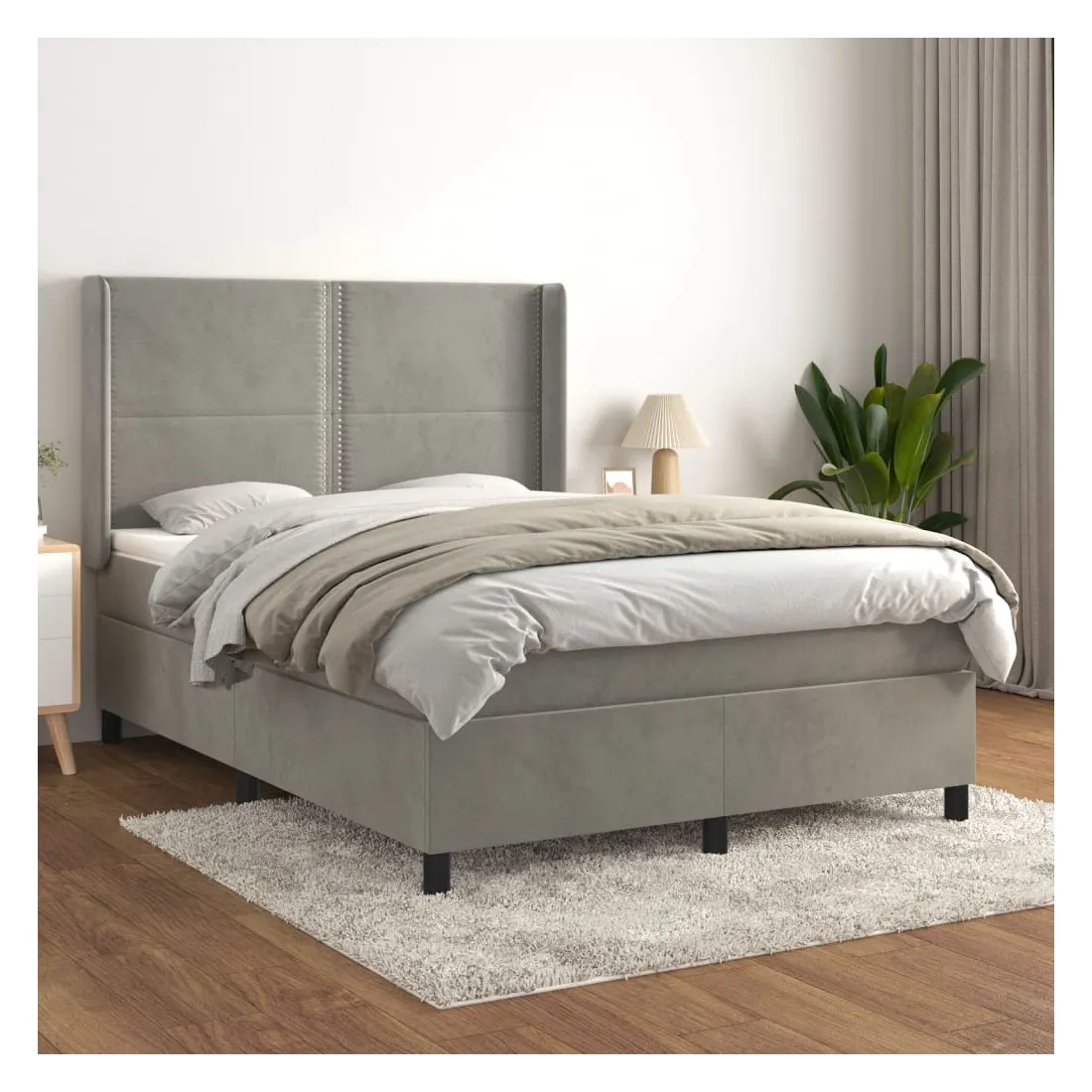 Sommier à lattes de lit et matelas Gris clair 140x190cm Velours