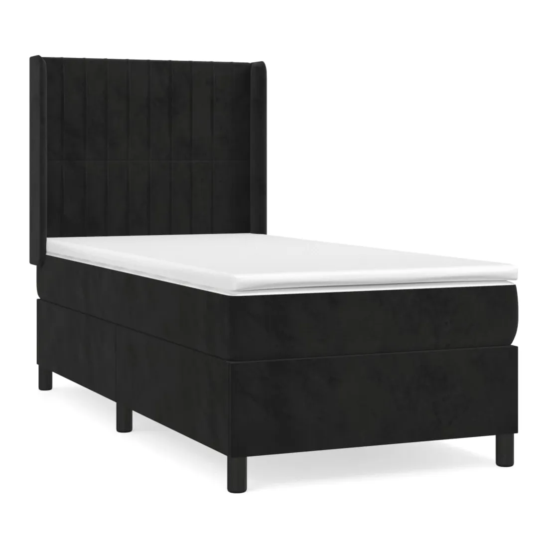 Sommier à lattes de lit avec matelas Noir 90x200 cm Velours