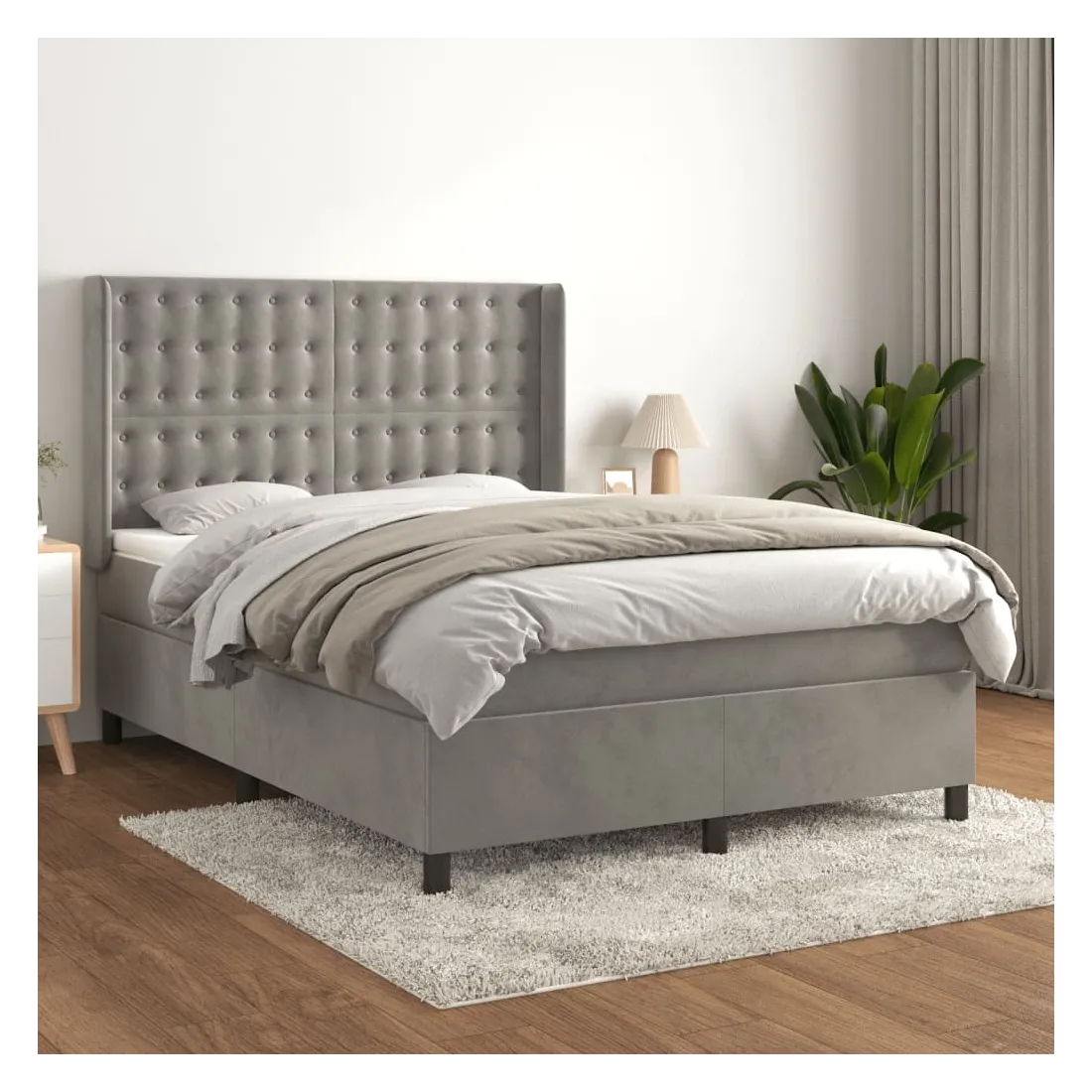 Sommier à lattes de lit et matelas Gris clair 140x190cm Velours
