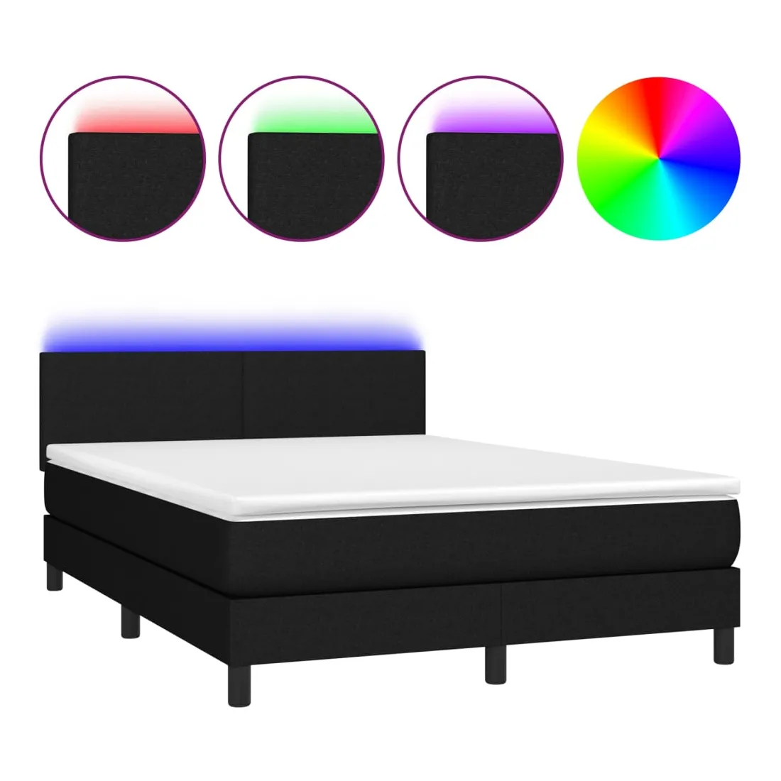 Sommier à lattes de lit avec matelas LED Noir 140x200 cm Tissu