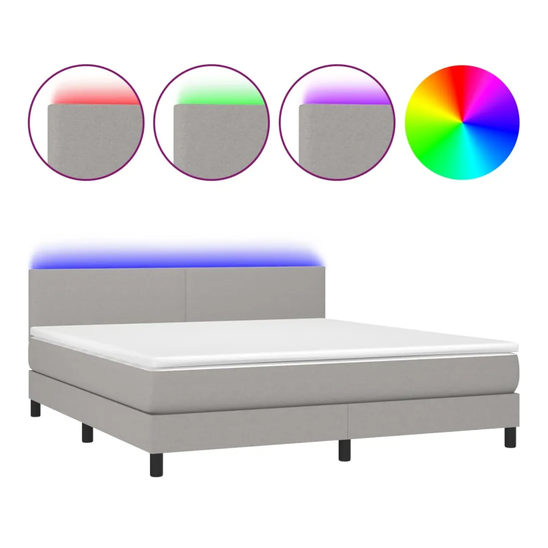 Utilisez ce sommier tapissier avec matelas et LED pour profiter d'un sommeil réparateur ! C'est le point central de votre chambre à coucher. Tissu durable : le tissu présente un aspect simple et épuré, et il est respirant et durable.Tête de lit pratique : la tête de lit est réglable en hauteur selon vos préférences. La tête de lit vous offre un excellent soutien du dos lorsque vous êtes assis dans votre lit pour lire ou regarder la télévision.Bande LED colorée : apportez de l'éclairage dans l'obscurité avec des lumières LED colorées !Matelas à ressorts ensachés : le ressort ensaché individuel intégré est connu pour sa très haute qualité tout en assurant un haut niveau de durabilité et d'adaptabilité. Il peut absorber efficacement le bruit et les chocs causés par les sauts et les rotations.Protège-matelas doux pour la peau : le protège-matelas est recouvert d'un tissu résistant et doux pour la peau, ce qui le rend souple et confortable. Remarque :Pour des raisons d'hygiène, le matelas ne peut pas être retourné si l'emballage est retiré ou ouvert.Chaque produit est livré avec un manuel de montage dans la boîte pour un montage facile.Seule la partie avec un symbole de ciseaux peut être coupée et seule la partie avec l'USB continuera à fonctionner comme avant.Ce produit est doté d'un connecteur USB, mais la source d'alimentation certifiée de USB 5V n'est pas incluse.