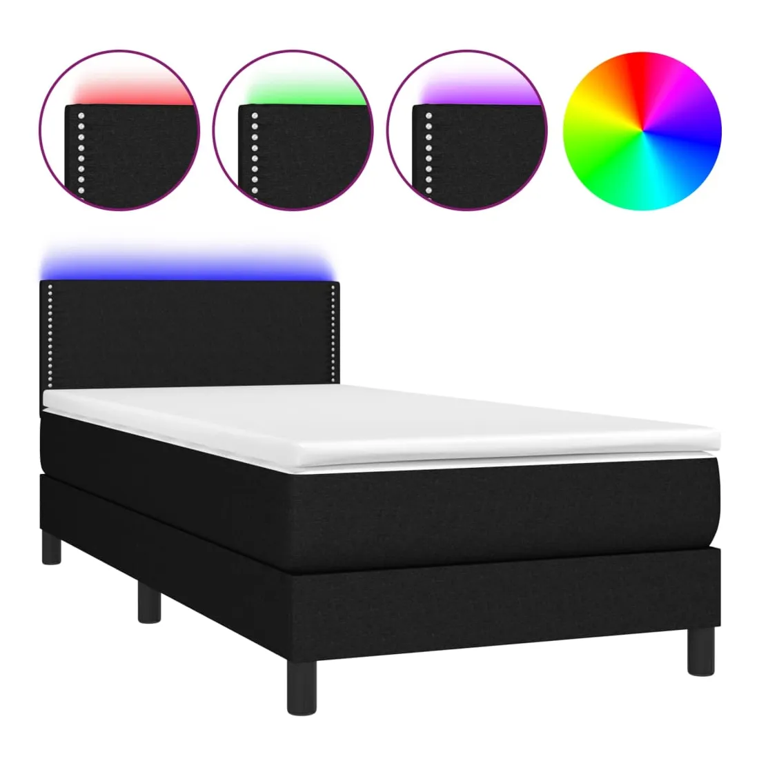 Utilisez ce sommier tapissier avec matelas et LED pour profiter d'un sommeil réparateur ! C'est le point central de votre chambre à coucher. Tissu durable : le tissu présente un aspect simple et épuré, et il est respirant et durable.Tête de lit pratique : la tête de lit est réglable en hauteur selon vos préférences. La tête de lit vous offre un excellent soutien du dos lorsque vous êtes assis dans votre lit pour lire ou regarder la télévision.Bande LED colorée : apportez de l'éclairage dans l'obscurité avec des lumières LED colorées !Matelas à ressorts ensachés : le ressort ensaché individuel intégré est connu pour sa très haute qualité tout en assurant un haut niveau de durabilité et d'adaptabilité. Il peut absorber efficacement le bruit et les chocs causés par les sauts et les rotations.Protège-matelas doux pour la peau : le protège-matelas est recouvert d'un tissu résistant et doux pour la peau, ce qui le rend souple et confortable. Remarque :Pour des raisons d'hygiène, le matelas ne peut pas être retourné si l'emballage est retiré ou ouvert.Chaque produit est livré avec un manuel de montage dans la boîte pour un montage facile.Seule la partie avec un symbole de ciseaux peut être coupée et seule la partie avec l'USB continuera à fonctionner comme avant.Ce produit est doté d'un connecteur USB, mais la source d'alimentation certifiée de USB 5V n'est pas incluse.