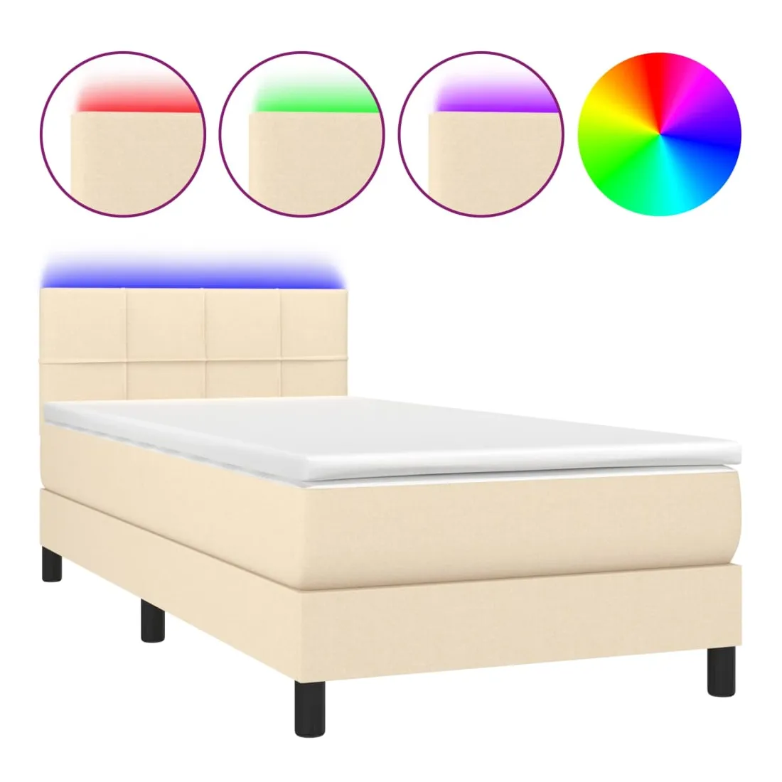 vidaXLUtilisez ce sommier tapissier avec matelas et LED pour profiter d'un sommeil réparateur ! C'est le point central de votre chambre à coucher. Tissu durable : le tissu présente un aspect simple et épuré, et il est respirant et durable.Tête de lit pratique : la tête de lit est réglable en hauteur selon vos préférences. La tête de lit vous offre un excellent soutien du dos lorsque vous êtes assis dans votre lit pour lire ou regarder la télévision.Bande LED colorée : apportez de l'éclairage dans l'obscurité avec des lumières LED colorées !Matelas à ressorts ensachés : le ressort ensaché individuel intégré est connu pour sa très haute qualité tout en assurant un haut niveau de durabilité et d'adaptabilité. Il peut absorber efficacement le bruit et les chocs causés par les sauts et les rotations.Protège-matelas doux pour la peau : le protège-matelas est recouvert d'un tissu résistant et doux pour la peau, ce qui le rend souple et confortable. Remarque :Pour des raisons d'hygiène, le matelas ne peut pas être retourné si l'emballage est retiré ou ouvert.Chaque produit est livré avec un manuel de montage dans la boîte pour un montage facile.Seule la partie avec un symbole de ciseaux peut être coupée et seule la partie avec l'USB continuera à fonctionner comme avant.Ce produit est doté d'un connecteur USB, mais la source d'alimentation certifiée de USB 5V n'est pas incluse.