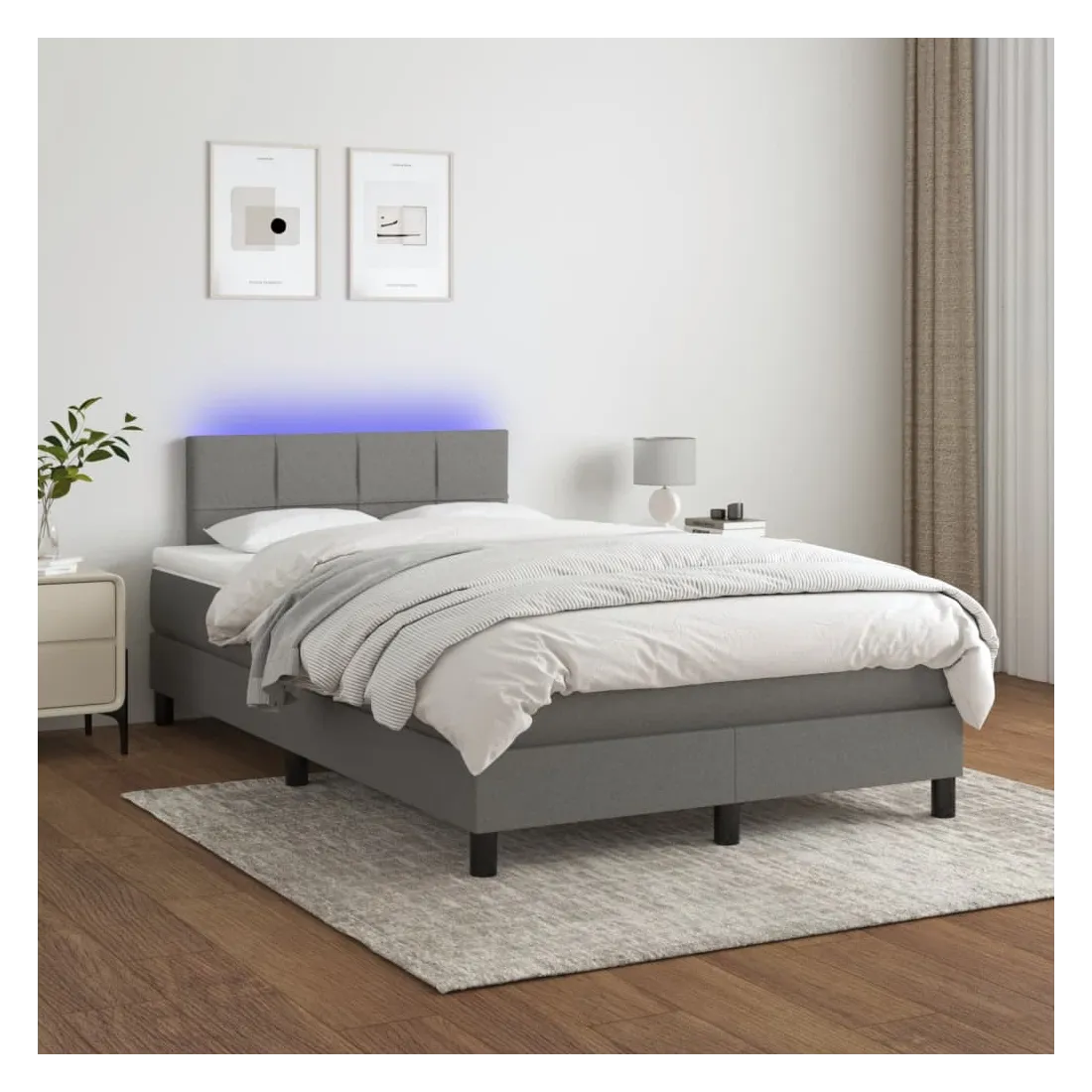 Utilisez ce sommier tapissier avec matelas et LED pour profiter d'un sommeil réparateur ! C'est le point central de votre chambre à coucher. Tissu durable : le tissu présente un aspect simple et épuré, et il est respirant et durable.Tête de lit pratique : la tête de lit est réglable en hauteur selon vos préférences. La tête de lit vous offre un excellent soutien du dos lorsque vous êtes assis dans votre lit pour lire ou regarder la télévision.Bande LED colorée : apportez de l'éclairage dans l'obscurité avec des lumières LED colorées !Matelas à ressorts ensachés : le ressort ensaché individuel intégré est connu pour sa très haute qualité tout en assurant un haut niveau de durabilité et d'adaptabilité. Il peut absorber efficacement le bruit et les chocs causés par les sauts et les rotations.Protège-matelas doux pour la peau : le protège-matelas est recouvert d'un tissu résistant et doux pour la peau, ce qui le rend souple et confortable. Remarque :Pour des raisons d'hygiène, le matelas ne peut pas être retourné si l'emballage est retiré ou ouvert.Chaque produit est livré avec un manuel de montage dans la boîte pour un montage facile.Seule la partie avec un symbole de ciseaux peut être coupée et seule la partie avec l'USB continuera à fonctionner comme avant.Ce produit est doté d'un connecteur USB, mais la source d'alimentation certifiée de USB 5V n'est pas incluse.