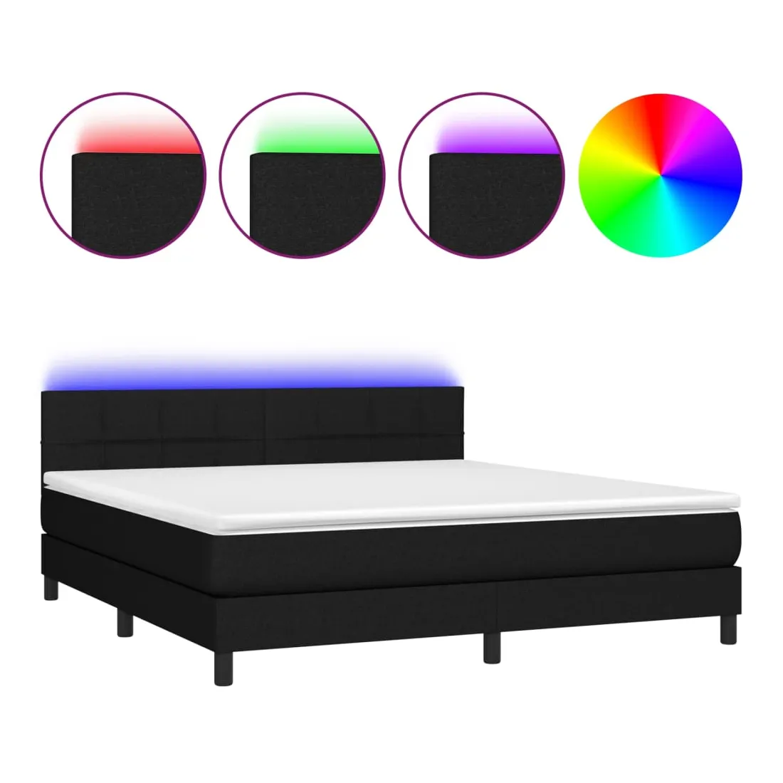 Sommier à lattes de lit avec matelas LED Noir 160x200 cm Tissu