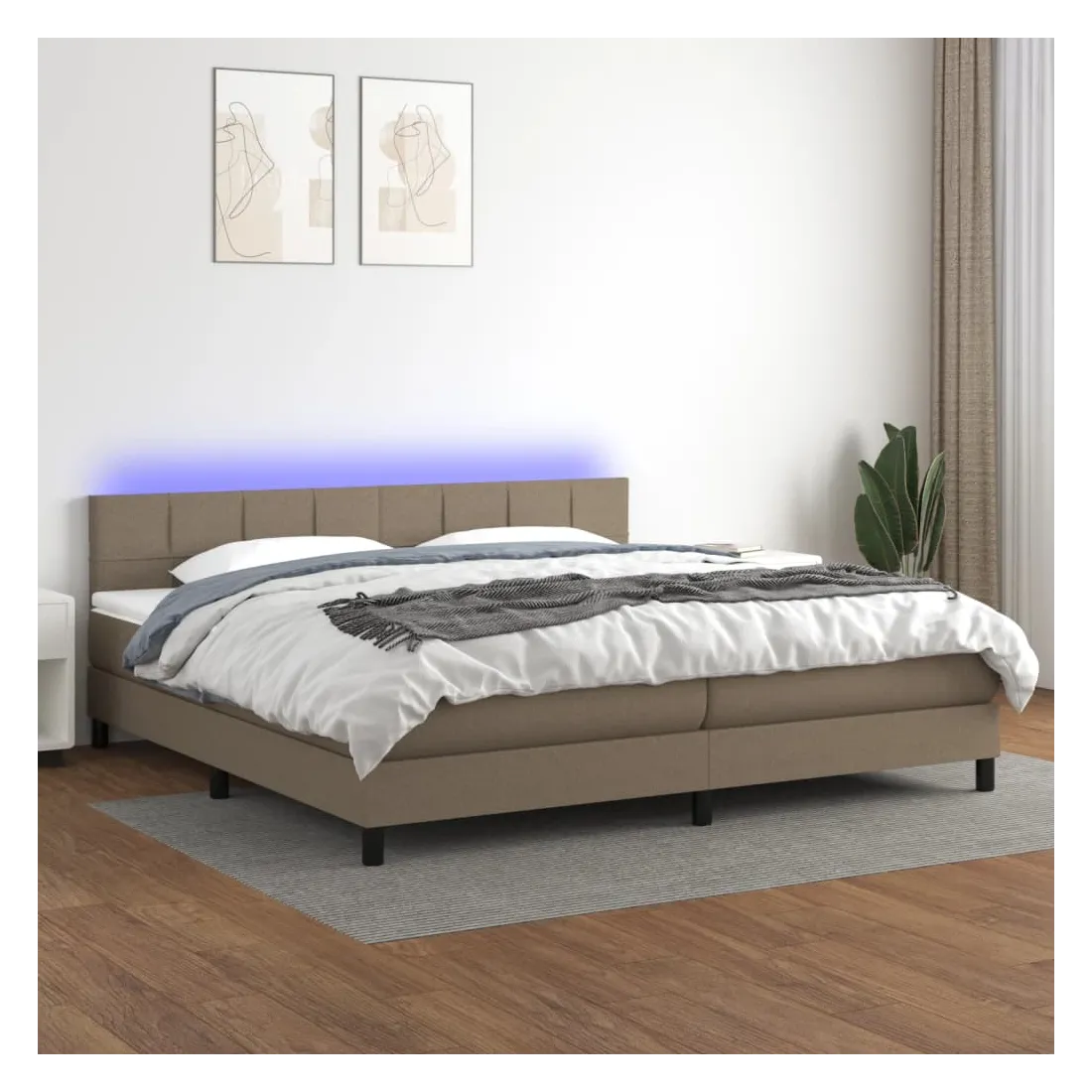 Sommier à lattes de lit et matelas et LED Taupe 200x200cm Tissu
