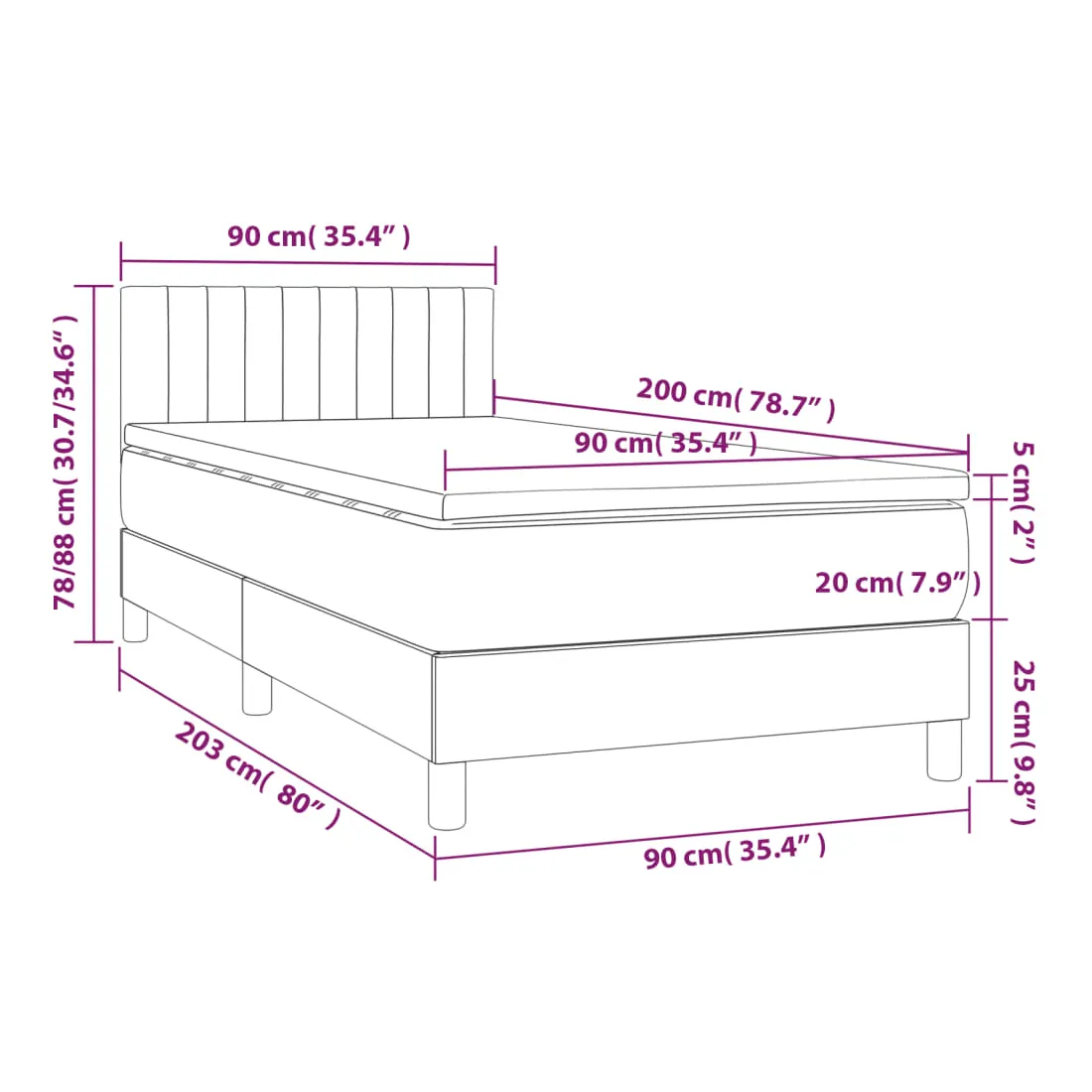 • Dimensions : 90 x 200 x 20 cm (l x L x H)