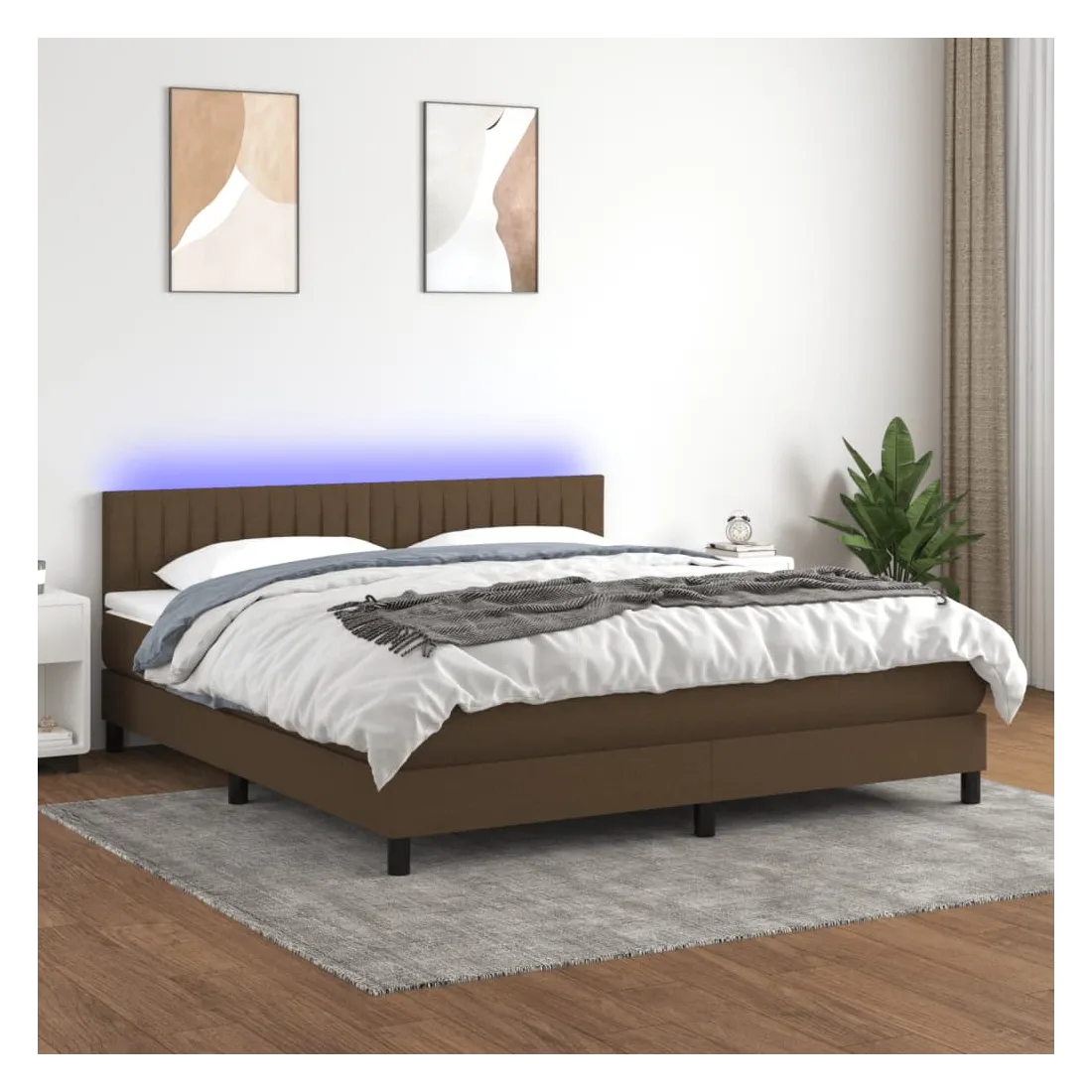 Sommier à lattes de lit matelas et LED Marron foncé 160x200 cm
