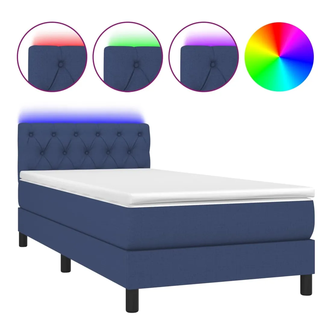 Sommier à lattes de lit avec matelas et LED Bleu 80x200cm Tissu