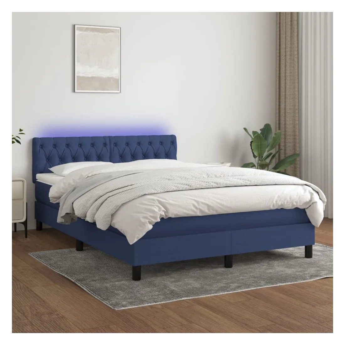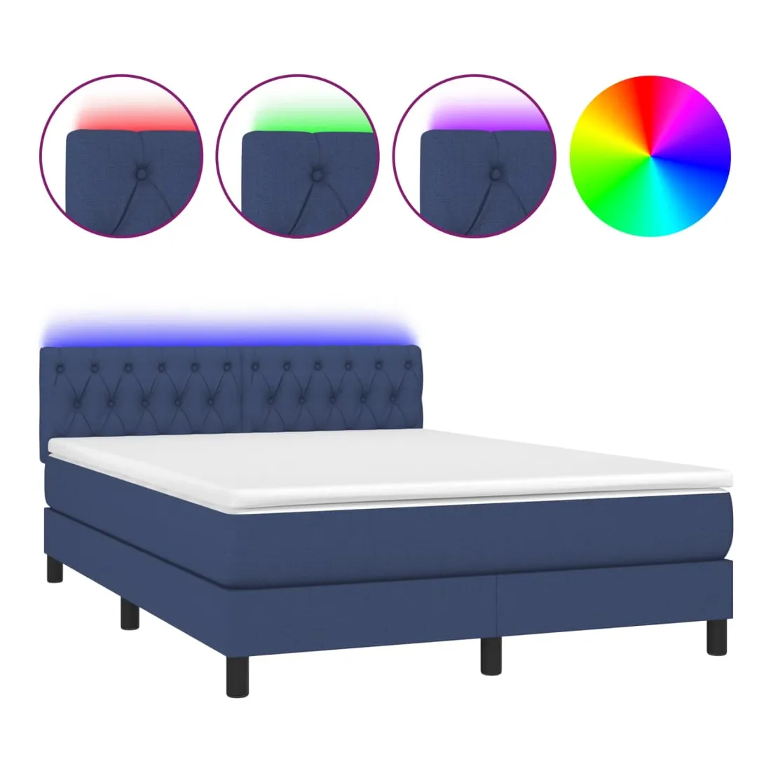 Sommier à lattes de lit avec matelas LED Bleu 140x200 cm Tissu