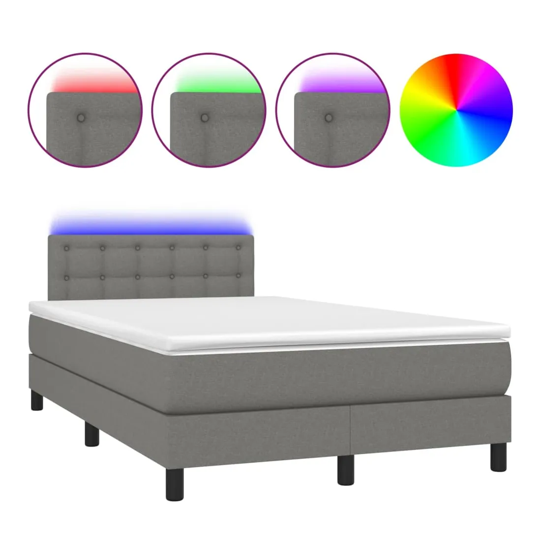Utilisez ce sommier tapissier avec matelas et LED pour profiter d'un sommeil réparateur ! C'est le point central de votre chambre à coucher. Tissu durable : le tissu présente un aspect simple et épuré, et il est respirant et durable.Tête de lit pratique : la tête de lit est réglable en hauteur selon vos préférences. La tête de lit vous offre un excellent soutien du dos lorsque vous êtes assis dans votre lit pour lire ou regarder la télévision.Bande LED colorée : apportez de l'éclairage dans l'obscurité avec des lumières LED colorées !Matelas à ressorts ensachés : le ressort ensaché individuel intégré est connu pour sa très haute qualité tout en assurant un haut niveau de durabilité et d'adaptabilité. Il peut absorber efficacement le bruit et les chocs causés par les sauts et les rotations.Protège-matelas doux pour la peau : le protège-matelas est recouvert d'un tissu résistant et doux pour la peau, ce qui le rend souple et confortable. Remarque :Pour des raisons d'hygiène, le matelas ne peut pas être retourné si l'emballage est retiré ou ouvert.Chaque produit est livré avec un manuel de montage dans la boîte pour un montage facile.Seule la partie avec un symbole de ciseaux peut être coupée et seule la partie avec l'USB continuera à fonctionner comme avant.Ce produit est doté d'un connecteur USB, mais la source d'alimentation certifiée de USB 5V n'est pas incluse.