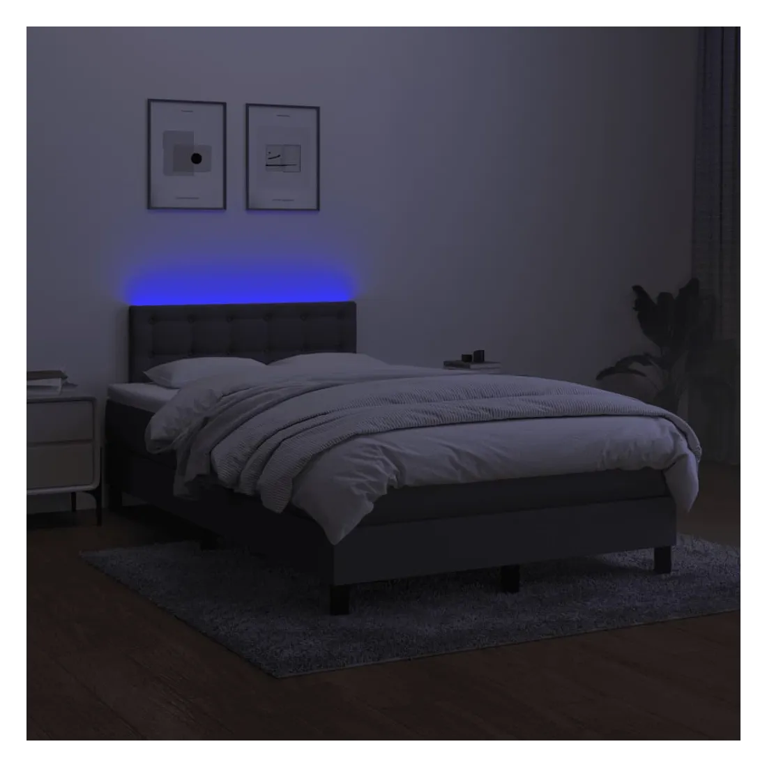 Utilisez ce sommier tapissier avec matelas et LED pour profiter d'un sommeil réparateur ! C'est le point central de votre chambre à coucher. Tissu durable : le tissu présente un aspect simple et épuré, et il est respirant et durable. Tête de lit pratique : la tête de lit est réglable en hauteur selon vos préférences. La tête de lit vous offre un excellent soutien du dos lorsque vous êtes assis dans votre lit pour lire ou regarder la télévision. Bande LED colorée : apportez de l'éclairage dans l'obscurité avec des lumières LED colorées ! Matelas à ressorts ensachés : le ressort ensaché individuel intégré est connu pour sa très haute qualité tout en assurant un haut niveau de durabilité et d'adaptabilité. Il peut absorber efficacement le bruit et les chocs causés par les sauts et les rot