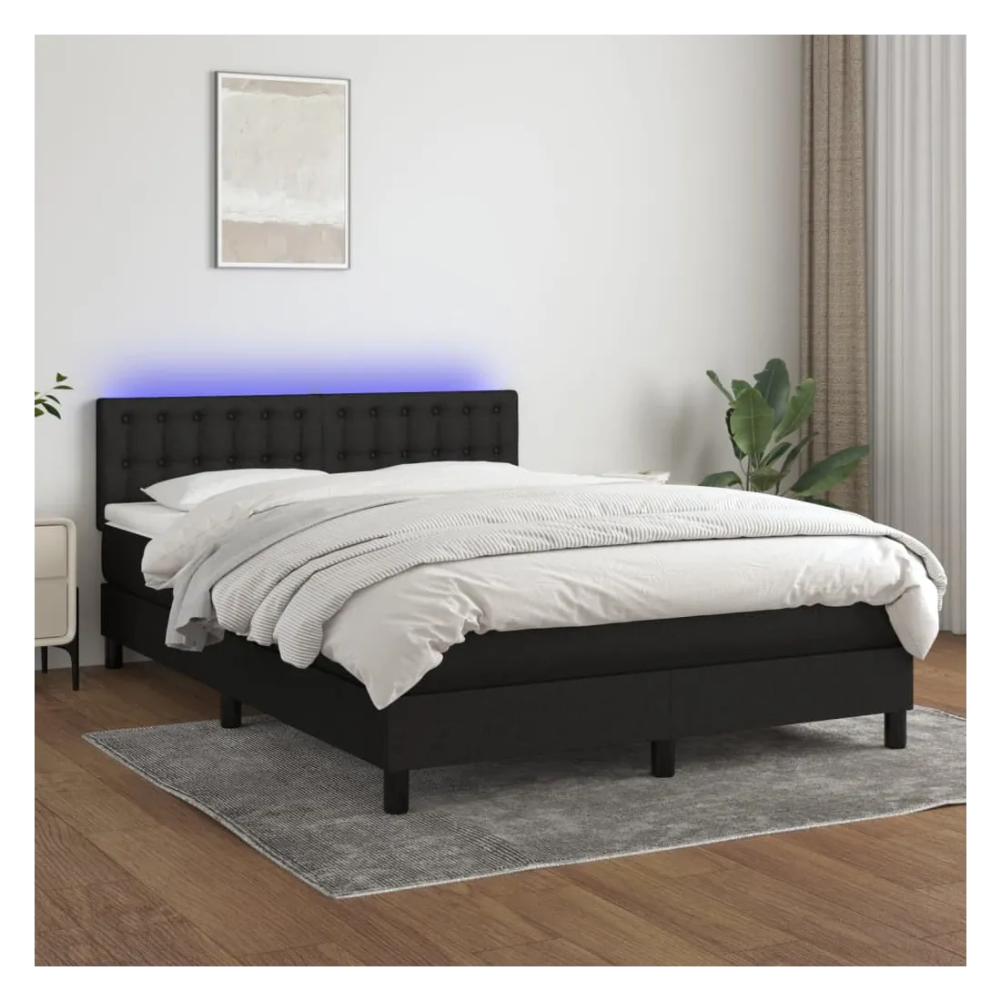 Utilisez ce sommier tapissier avec matelas et LED pour profiter d'un sommeil réparateur ! C'est le point central de votre chambre à coucher. Tissu durable : le tissu présente un aspect simple et épuré, et il est respirant et durable. Tête de lit pratique : la tête de lit est réglable en hauteur selon vos préférences. La tête de lit vous offre un excellent soutien du dos lorsque vous êtes assis dans votre lit pour lire ou regarder la télévision. Bande LED colorée : apportez de l'éclairage dans l'obscurité avec des lumières LED colorées ! Matelas à ressorts ensachés : le ressort ensaché individuel intégré est connu pour sa très haute qualité tout en assurant un haut niveau de durabilité et d'adaptabilité. Il peut absorber efficacement le bruit et les chocs causés par les sauts et les rot