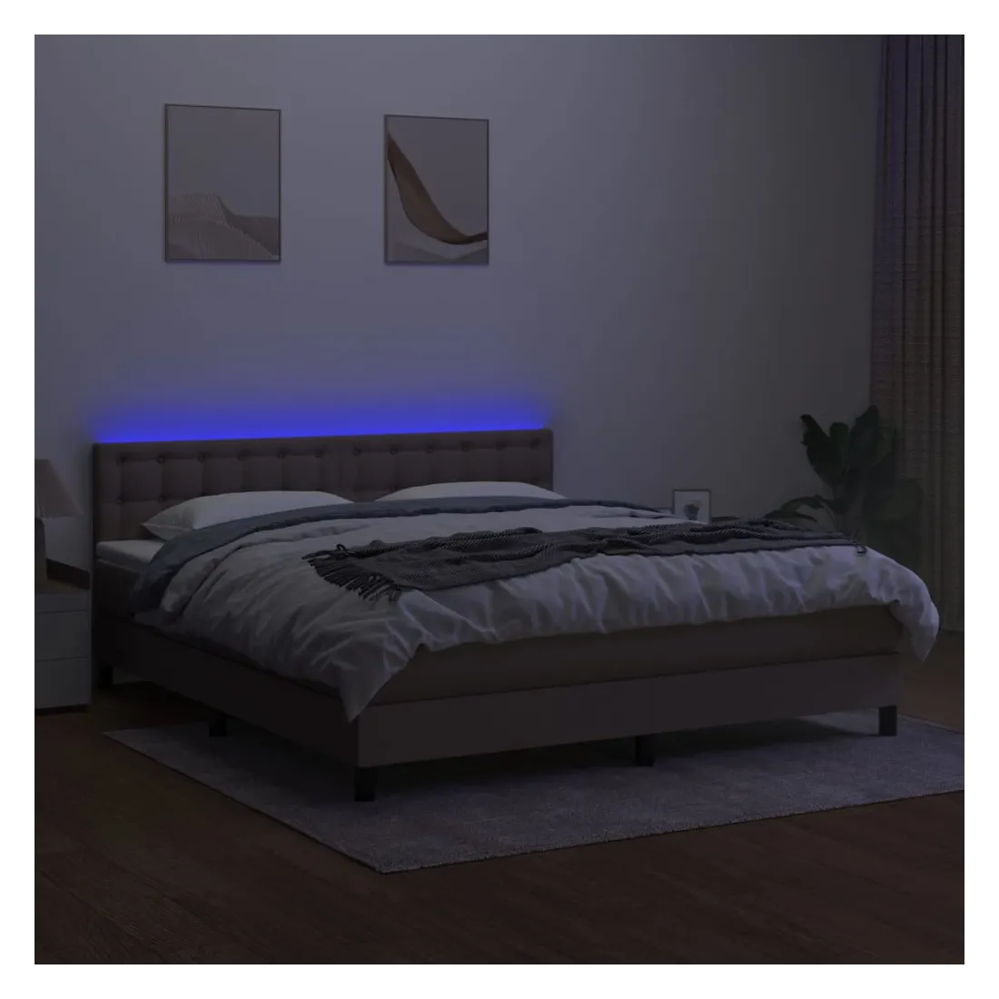 Sommier à lattes de lit avec matelas LED Taupe 180x200 cm Tissu