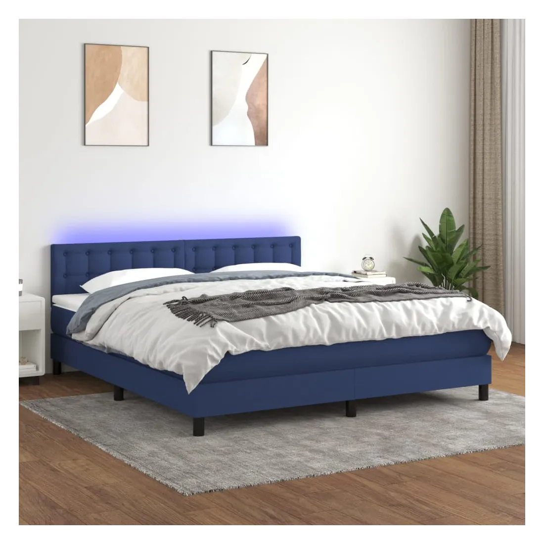 Utilisez ce sommier tapissier avec matelas et LED pour profiter d'un sommeil réparateur ! C'est le point central de votre chambre à coucher. Tissu durable : le tissu présente un aspect simple et épuré, et il est respirant et durable.Tête de lit pratique : la tête de lit est réglable en hauteur selon vos préférences. La tête de lit vous offre un excellent soutien du dos lorsque vous êtes assis dans votre lit pour lire ou regarder la télévision.Bande LED colorée : apportez de l'éclairage dans l'obscurité avec des lumières LED colorées !Matelas à ressorts ensachés : le ressort ensaché individuel intégré est connu pour sa très haute qualité tout en assurant un haut niveau de durabilité et d'adaptabilité. Il peut absorber efficacement le bruit et les chocs causés par les sauts et les rotations.Protège-matelas doux pour la peau : le protège-matelas est recouvert d'un tissu résistant et doux pour la peau, ce qui le rend souple et confortable. Remarque :Pour des raisons d'hygiène, le matelas ne peut pas être retourné si l'emballage est retiré ou ouvert.Chaque produit est livré avec un manuel de montage dans la boîte pour un montage facile.Seule la partie avec un symbole de ciseaux peut être coupée et seule la partie avec l'USB continuera à fonctionner comme avant.Ce produit est doté d'un connecteur USB, mais la source d'alimentation certifiée de USB 5V n'est pas incluse.