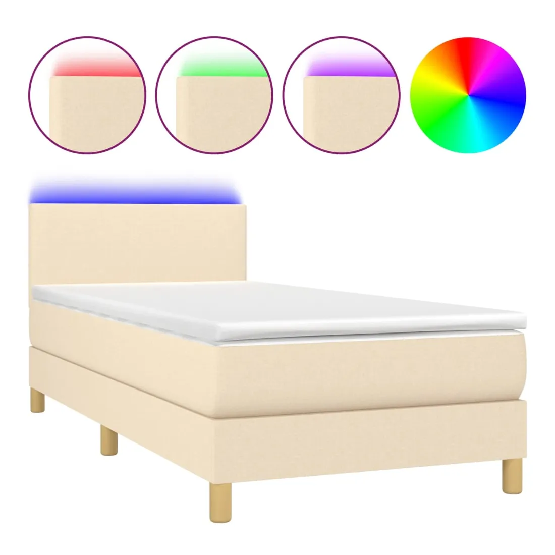 Sommier à lattes de lit avec matelas LED Crème 100x200 cm Tissu