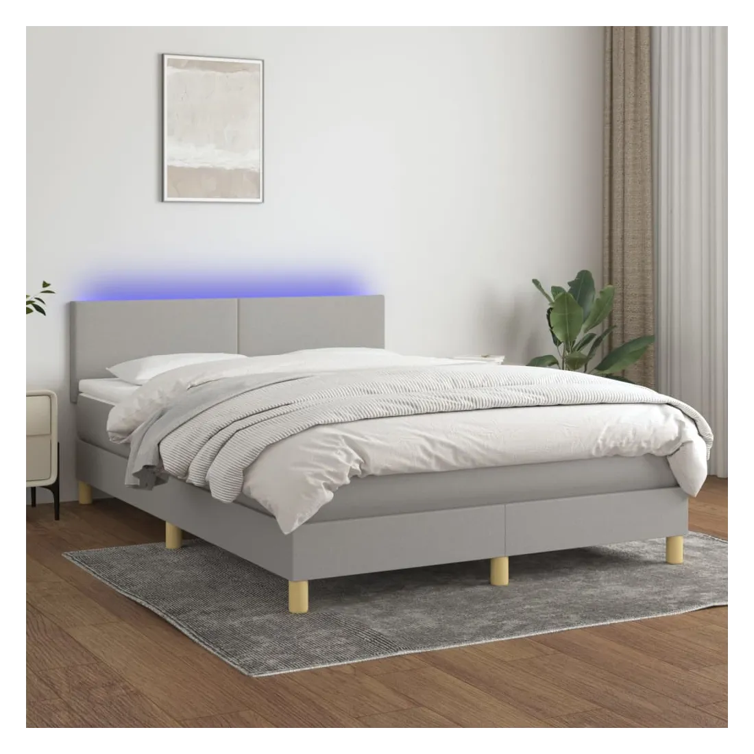 Utilisez ce sommier tapissier avec matelas et LED pour profiter d'un sommeil réparateur ! C'est le point central de votre chambre à coucher. Tissu durable : le tissu présente un aspect simple et épuré, et il est respirant et durable.Tête de lit pratique : la tête de lit est réglable en hauteur selon vos préférences. La tête de lit vous offre un excellent soutien du dos lorsque vous êtes assis dans votre lit pour lire ou regarder la télévision.Bande LED colorée : apportez de l'éclairage dans l'obscurité avec des lumières LED colorées !Matelas à ressorts ensachés : le ressort ensaché individuel intégré est connu pour sa très haute qualité tout en assurant un haut niveau de durabilité et d'adaptabilité. Il peut absorber efficacement le bruit et les chocs causés par les sauts et les rotations.Protège-matelas doux pour la peau : le protège-matelas est recouvert d'un tissu résistant et doux pour la peau, ce qui le rend souple et confortable. Remarque :Pour des raisons d'hygiène, le matelas ne peut pas être retourné si l'emballage est retiré ou ouvert.Chaque produit est livré avec un manuel de montage dans la boîte pour un montage facile.Seule la partie avec un symbole de ciseaux peut être coupée et seule la partie avec l'USB continuera à fonctionner comme avant.Ce produit est doté d'un connecteur USB, mais la source d'alimentation certifiée de USB 5V n'est pas incluse.