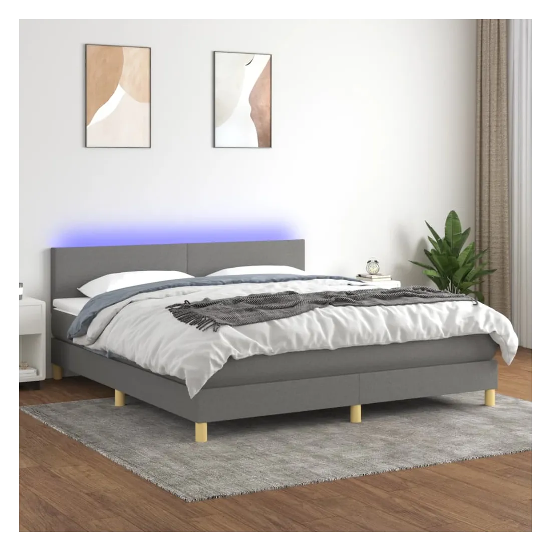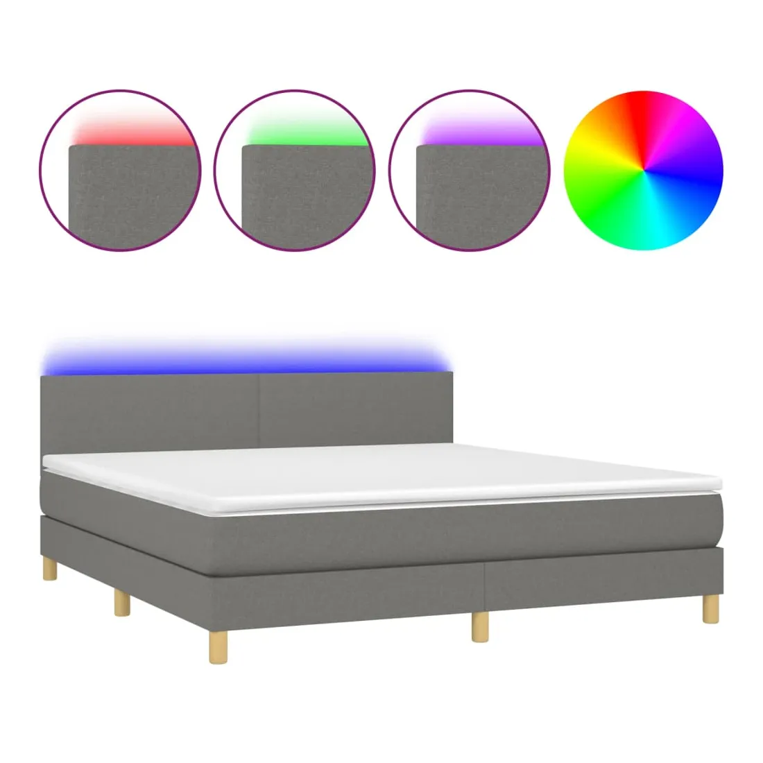 Utilisez ce sommier tapissier avec matelas et LED pour profiter d'un sommeil réparateur ! C'est le point central de votre chambre à coucher. Tissu durable : le tissu présente un aspect simple et épuré, et il est respirant et durable.Tête de lit pratique : la tête de lit est réglable en hauteur selon vos préférences. La tête de lit vous offre un excellent soutien du dos lorsque vous êtes assis dans votre lit pour lire ou regarder la télévision.Bande LED colorée : apportez de l'éclairage dans l'obscurité avec des lumières LED colorées !Matelas à ressorts ensachés : le ressort ensaché individuel intégré est connu pour sa très haute qualité tout en assurant un haut niveau de durabilité et d'adaptabilité. Il peut absorber efficacement le bruit et les chocs causés par les sauts et les rotations.Protège-matelas doux pour la peau : le protège-matelas est recouvert d'un tissu résistant et doux pour la peau, ce qui le rend souple et confortable. Remarque :Pour des raisons d'hygiène, le matelas ne peut pas être retourné si l'emballage est retiré ou ouvert.Chaque produit est livré avec un manuel de montage dans la boîte pour un montage facile.Seule la partie avec un symbole de ciseaux peut être coupée et seule la partie avec l'USB continuera à fonctionner comme avant.Ce produit est doté d'un connecteur USB, mais la source d'alimentation certifiée de USB 5V n'est pas incluse.