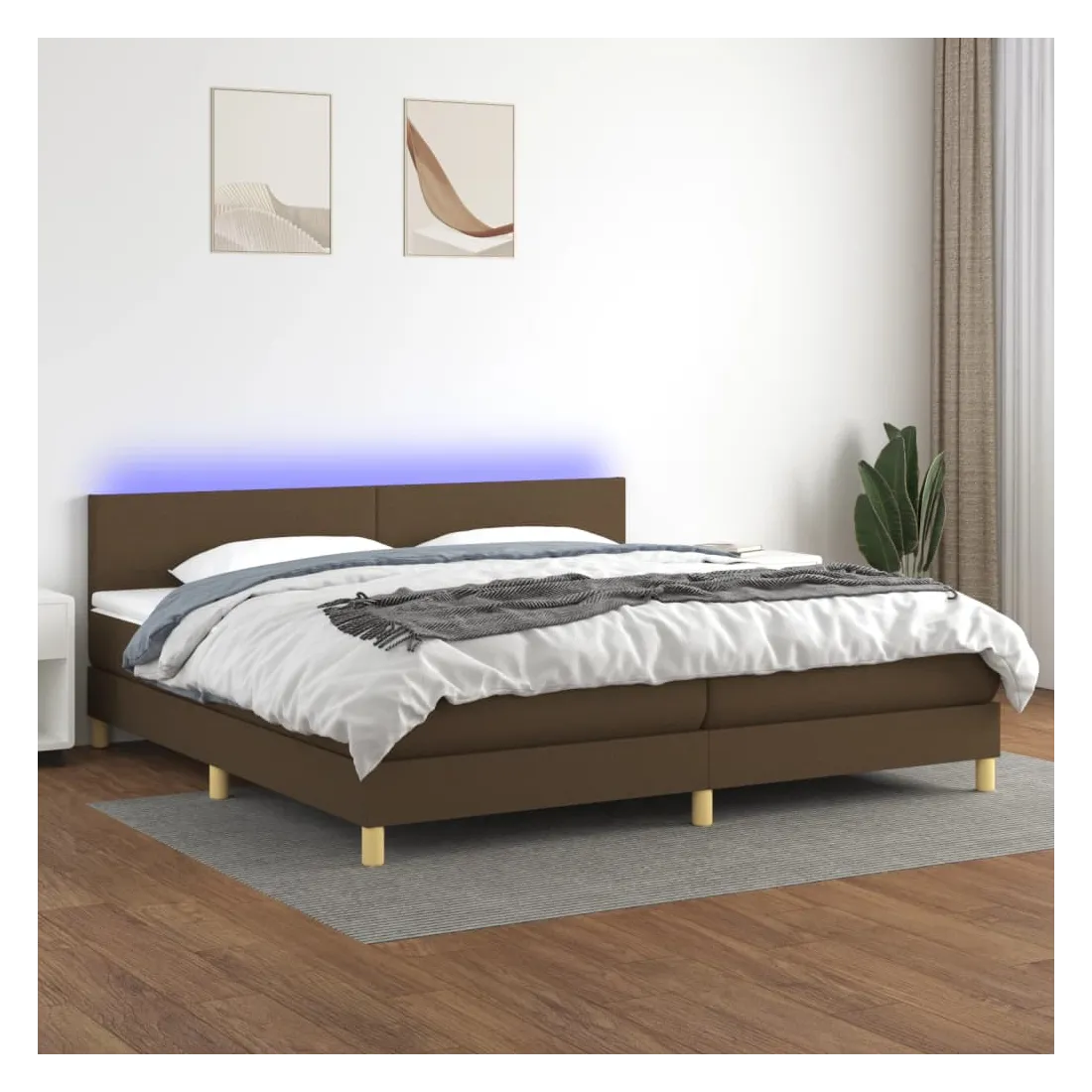 Utilisez ce sommier tapissier avec matelas et LED pour profiter d'un sommeil réparateur ! C'est le point central de votre chambre à coucher. Tissu durable : le tissu présente un aspect simple et épuré, et il est respirant et durable. Tête de lit pratique : la tête de lit est réglable en hauteur selon vos préférences. La tête de lit vous offre un excellent soutien du dos lorsque vous êtes assis dans votre lit pour lire ou regarder la télévision. Bande LED colorée : apportez de l'éclairage dans l'obscurité avec des lumières LED colorées ! Matelas à ressorts ensachés : le ressort ensaché individuel intégré est connu pour sa très haute qualité tout en assurant un haut niveau de durabilité et d'adaptabilité. Il peut absorber efficacement le bruit et les chocs causés par les sauts et les rot