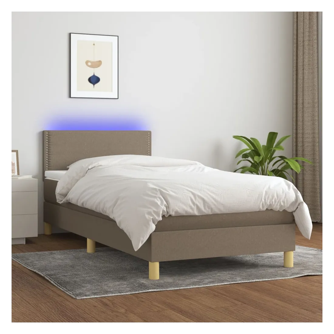 Sommier à lattes de lit avec matelas LED Taupe 90x200 cm Tissu