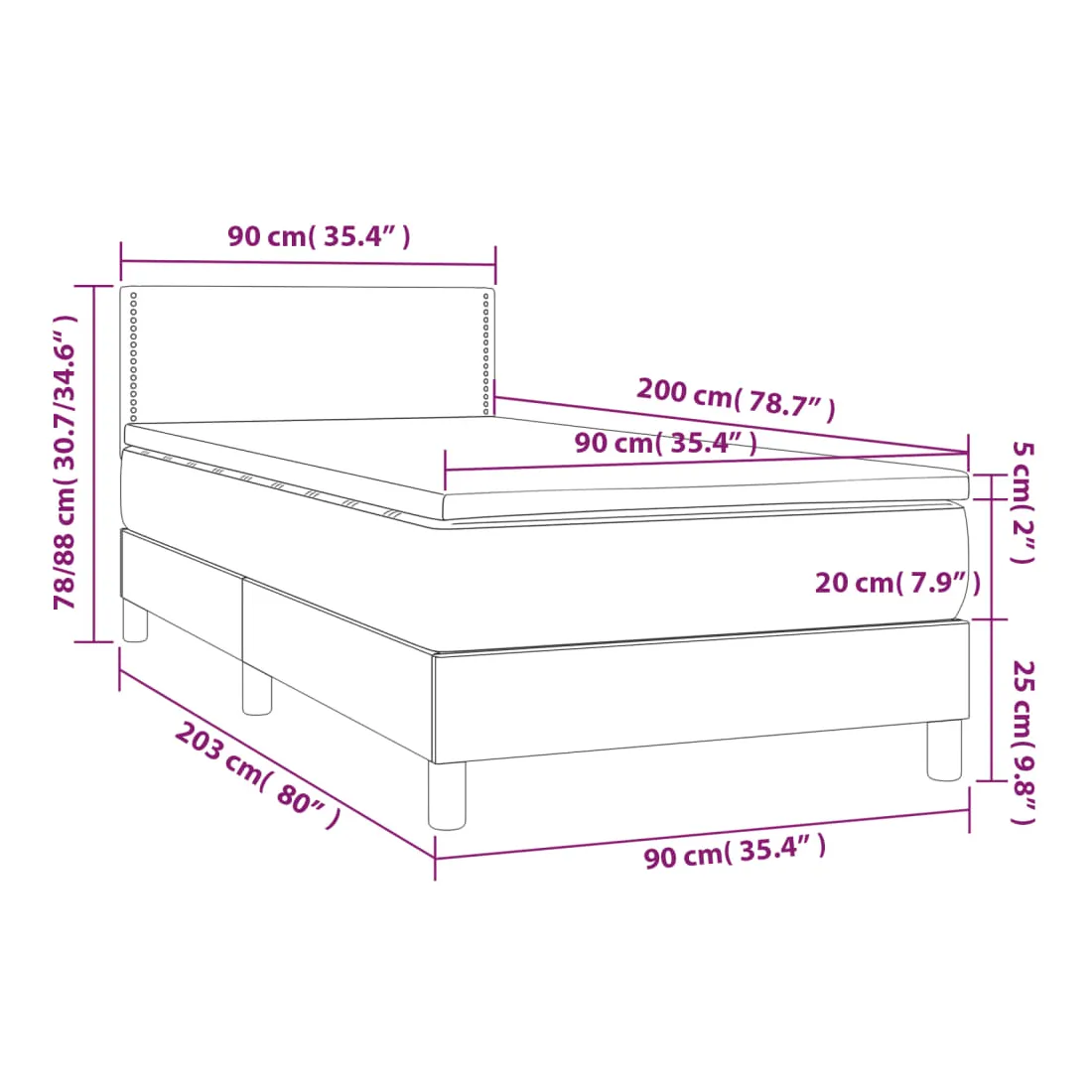 • Dimensions : 90 x 200 x 20 cm (l x L x H)