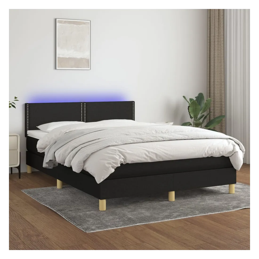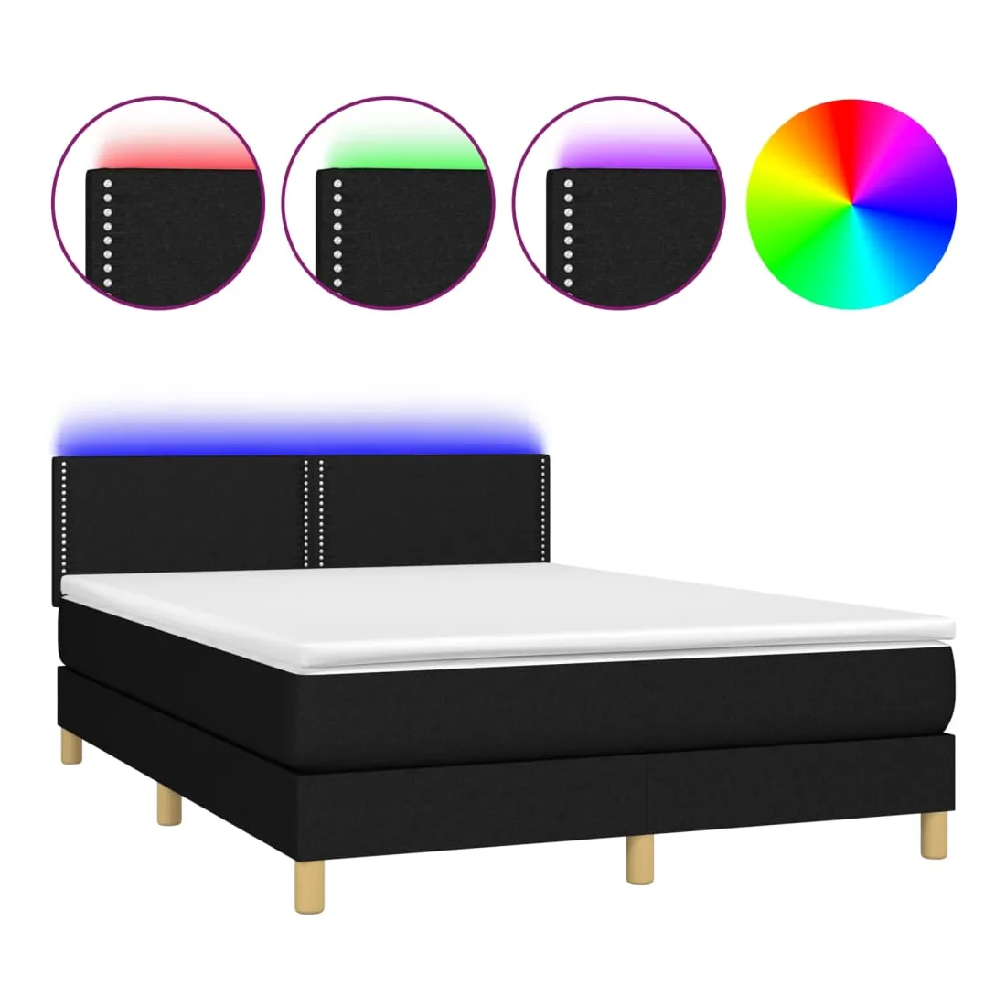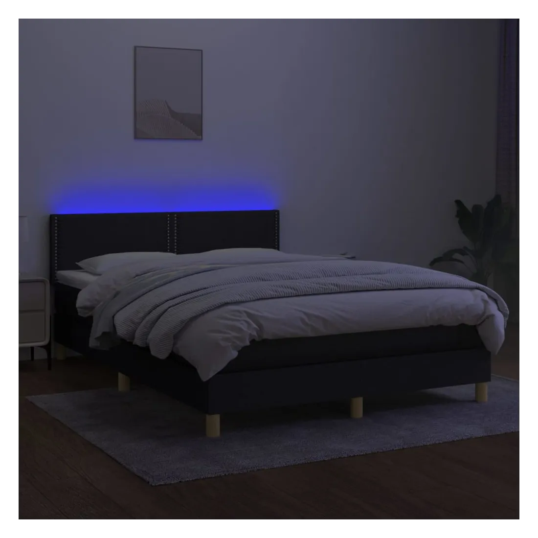 Sommier à lattes de lit avec matelas LED Noir 140x190 cm Tissu