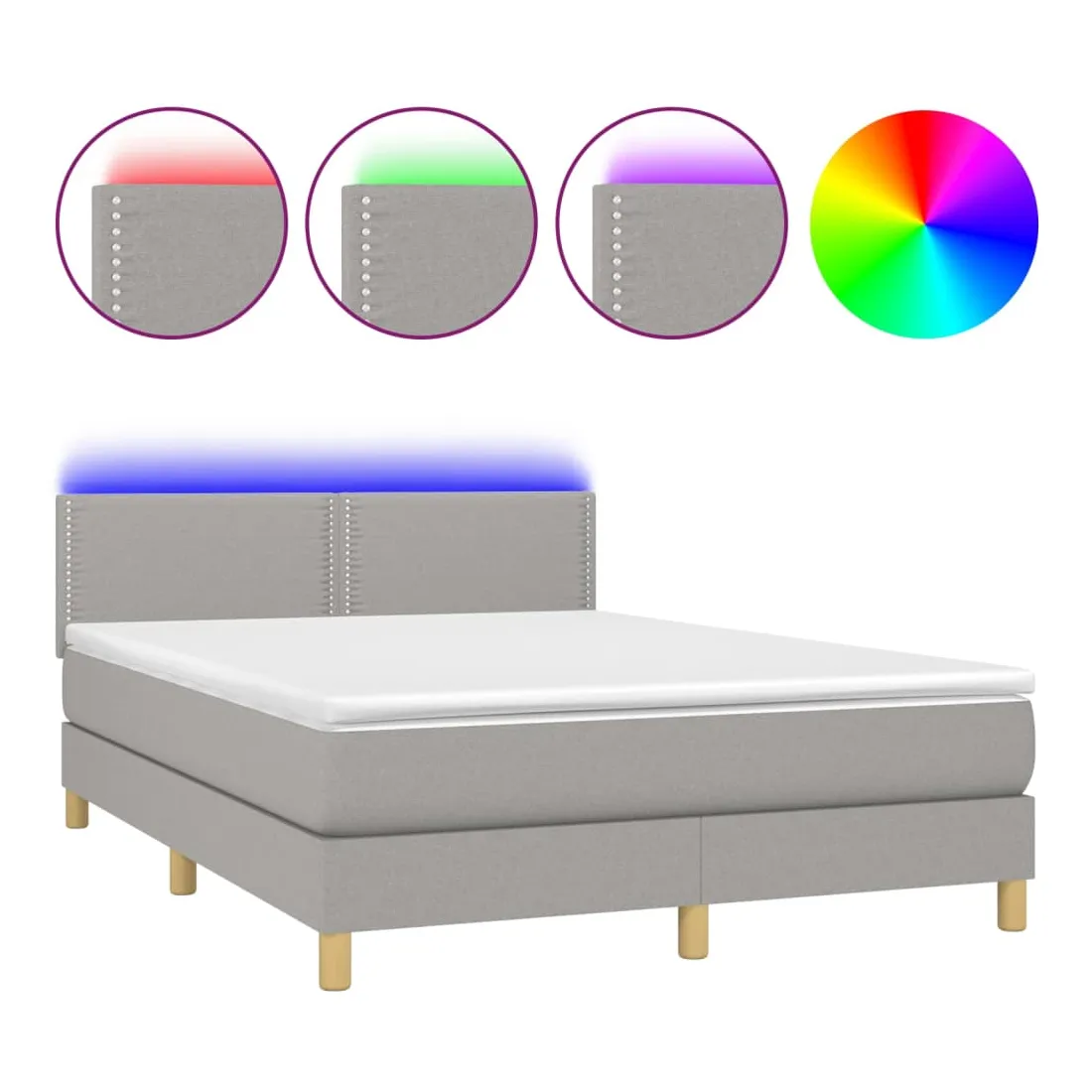 Utilisez ce sommier tapissier avec matelas et LED pour profiter d'un sommeil réparateur ! C'est le point central de votre chambre à coucher. Tissu durable : le tissu présente un aspect simple et épuré, et il est respirant et durable.Tête de lit pratique : la tête de lit est réglable en hauteur selon vos préférences. La tête de lit vous offre un excellent soutien du dos lorsque vous êtes assis dans votre lit pour lire ou regarder la télévision.Bande LED colorée : apportez de l'éclairage dans l'obscurité avec des lumières LED colorées !Matelas à ressorts ensachés : le ressort ensaché individuel intégré est connu pour sa très haute qualité tout en assurant un haut niveau de durabilité et d'adaptabilité. Il peut absorber efficacement le bruit et les chocs causés par les sauts et les rotations.Protège-matelas doux pour la peau : le protège-matelas est recouvert d'un tissu résistant et doux pour la peau, ce qui le rend souple et confortable. Remarque :Pour des raisons d'hygiène, le matelas ne peut pas être retourné si l'emballage est retiré ou ouvert.Chaque produit est livré avec un manuel de montage dans la boîte pour un montage facile.Seule la partie avec un symbole de ciseaux peut être coupée et seule la partie avec l'USB continuera à fonctionner comme avant.Ce produit est doté d'un connecteur USB, mais la source d'alimentation certifiée de USB 5V n'est pas incluse.