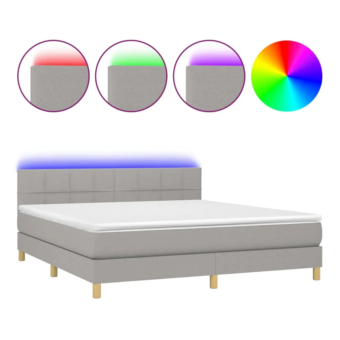 Utilisez ce sommier tapissier avec matelas et LED pour profiter d'un sommeil réparateur ! C'est le point central de votre chambre à coucher. Tissu durable : le tissu présente un aspect simple et épuré, et il est respirant et durable.Tête de lit pratique : la tête de lit est réglable en hauteur selon vos préférences. La tête de lit vous offre un excellent soutien du dos lorsque vous êtes assis dans votre lit pour lire ou regarder la télévision.Bande LED colorée : apportez de l'éclairage dans l'obscurité avec des lumières LED colorées !Matelas à ressorts ensachés : le ressort ensaché individuel intégré est connu pour sa très haute qualité tout en assurant un haut niveau de durabilité et d'adaptabilité. Il peut absorber efficacement le bruit et les chocs causés par les sauts et les rotations.Protège-matelas doux pour la peau : le protège-matelas est recouvert d'un tissu résistant et doux pour la peau, ce qui le rend souple et confortable. Remarque :Pour des raisons d'hygiène, le matelas ne peut pas être retourné si l'emballage est retiré ou ouvert.Chaque produit est livré avec un manuel de montage dans la boîte pour un montage facile.Seule la partie avec un symbole de ciseaux peut être coupée et seule la partie avec l'USB continuera à fonctionner comme avant.Ce produit est doté d'un connecteur USB, mais la source d'alimentation certifiée de USB 5V n'est pas incluse.
