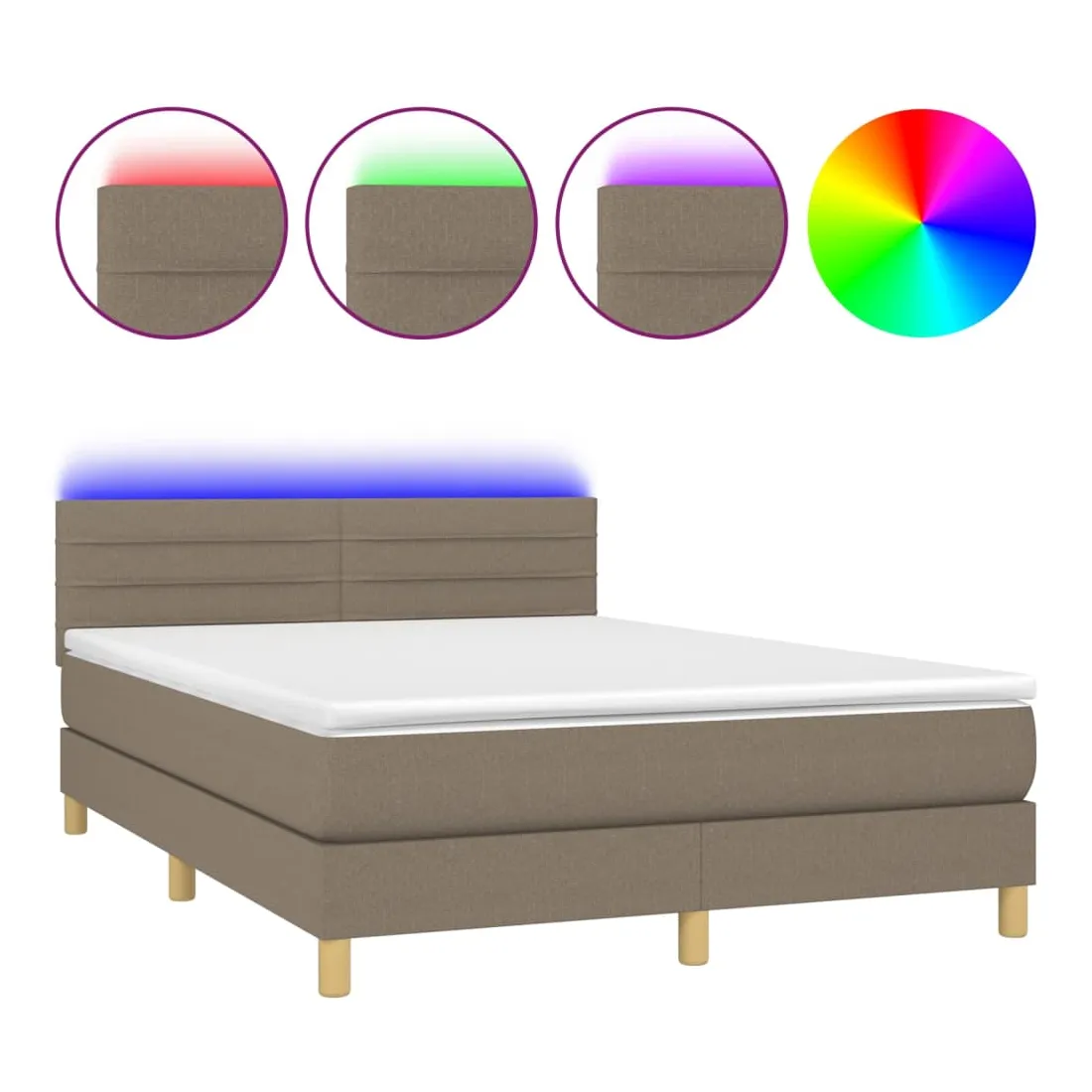 Sommier à lattes de lit avec matelas LED Taupe 140x190 cm Tissu