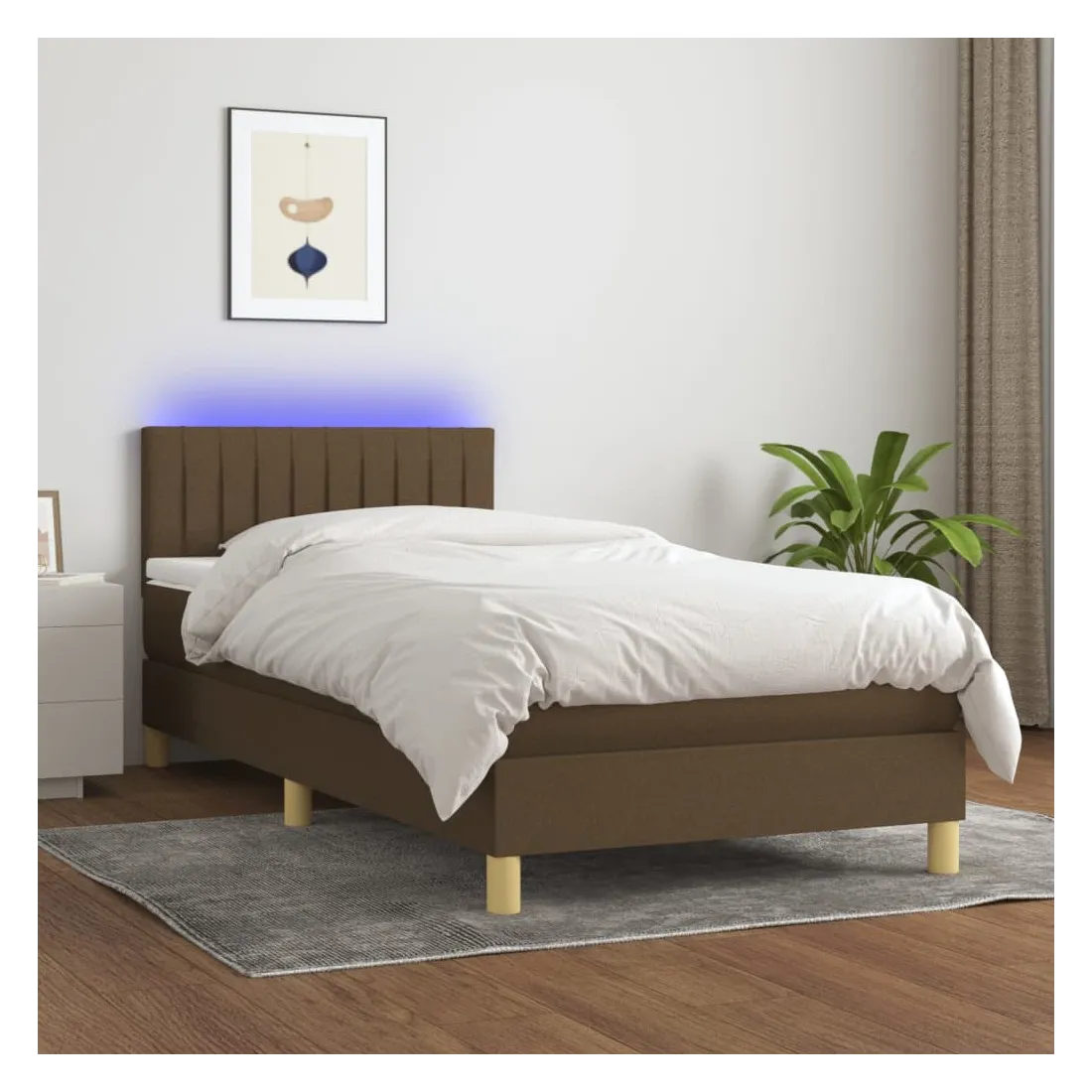 Sommier à lattes de lit et matelas et LED Marron foncé 90x200cm