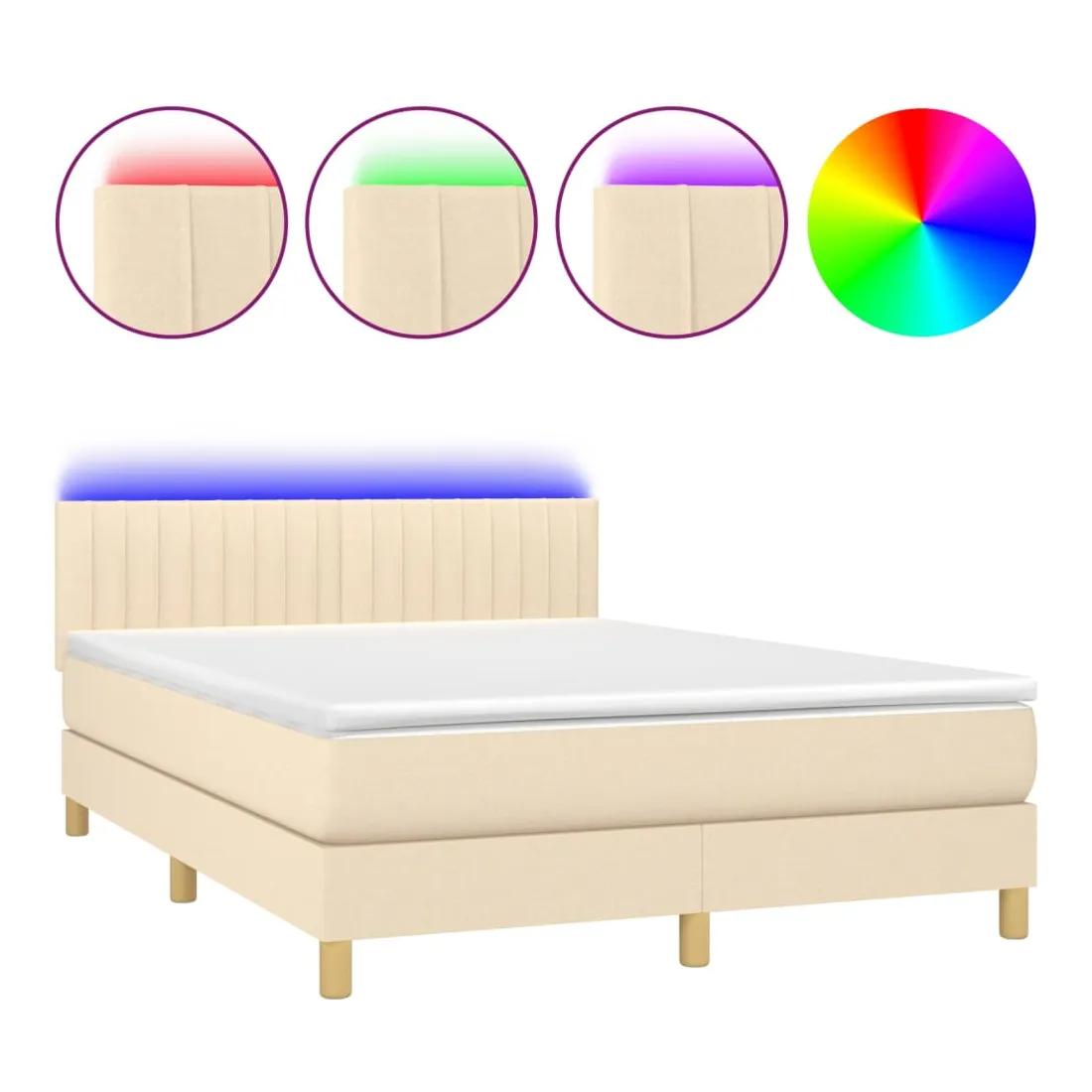 Utilisez ce sommier tapissier avec matelas et LED pour profiter d'un sommeil réparateur ! C'est le point central de votre chambre à coucher. Tissu durable : le tissu présente un aspect simple et épuré, et il est respirant et durable.Tête de lit pratique : la tête de lit est réglable en hauteur selon vos préférences. La tête de lit vous offre un excellent soutien du dos lorsque vous êtes assis dans votre lit pour lire ou regarder la télévision.Bande LED colorée : apportez de l'éclairage dans l'obscurité avec des lumières LED colorées !Matelas à ressorts ensachés : le ressort ensaché individuel intégré est connu pour sa très haute qualité tout en assurant un haut niveau de durabilité et d'adaptabilité. Il peut absorber efficacement le bruit et les chocs causés par les sauts et les rotations.Protège-matelas doux pour la peau : le protège-matelas est recouvert d'un tissu résistant et doux pour la peau, ce qui le rend souple et confortable. Remarque :Pour des raisons d'hygiène, le matelas ne peut pas être retourné si l'emballage est retiré ou ouvert.Chaque produit est livré avec un manuel de montage dans la boîte pour un montage facile.Seule la partie avec un symbole de ciseaux peut être coupée et seule la partie avec l'USB continuera à fonctionner comme avant.Ce produit est doté d'un connecteur USB, mais la source d'alimentation certifiée de USB 5V n'est pas incluse.