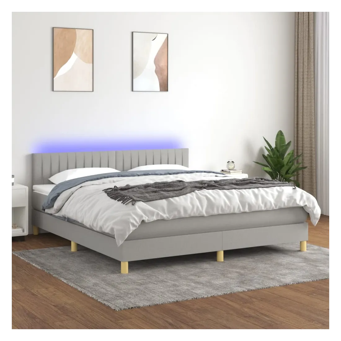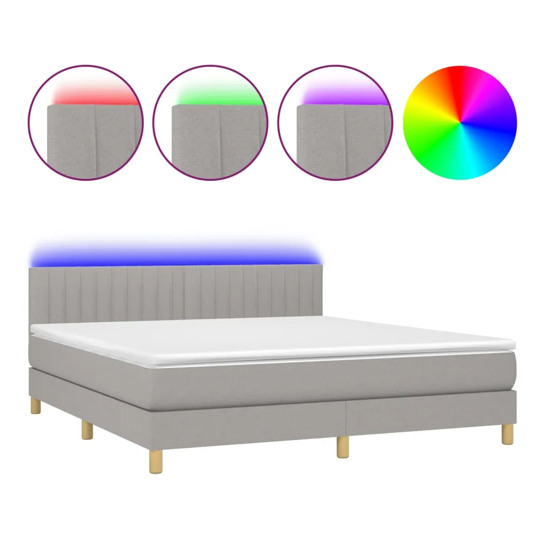 Utilisez ce sommier tapissier avec matelas et LED pour profiter d'un sommeil réparateur ! C'est le point central de votre chambre à coucher. Tissu durable : le tissu présente un aspect simple et épuré, et il est respirant et durable.Tête de lit pratique : la tête de lit est réglable en hauteur selon vos préférences. La tête de lit vous offre un excellent soutien du dos lorsque vous êtes assis dans votre lit pour lire ou regarder la télévision.Bande LED colorée : apportez de l'éclairage dans l'obscurité avec des lumières LED colorées !Matelas à ressorts ensachés : le ressort ensaché individuel intégré est connu pour sa très haute qualité tout en assurant un haut niveau de durabilité et d'adaptabilité. Il peut absorber efficacement le bruit et les chocs causés par les sauts et les rotations.Protège-matelas doux pour la peau : le protège-matelas est recouvert d'un tissu résistant et doux pour la peau, ce qui le rend souple et confortable. Remarque :Pour des raisons d'hygiène, le matelas ne peut pas être retourné si l'emballage est retiré ou ouvert.Chaque produit est livré avec un manuel de montage dans la boîte pour un montage facile.Seule la partie avec un symbole de ciseaux peut être coupée et seule la partie avec l'USB continuera à fonctionner comme avant.Ce produit est doté d'un connecteur USB, mais la source d'alimentation certifiée de USB 5V n'est pas incluse.