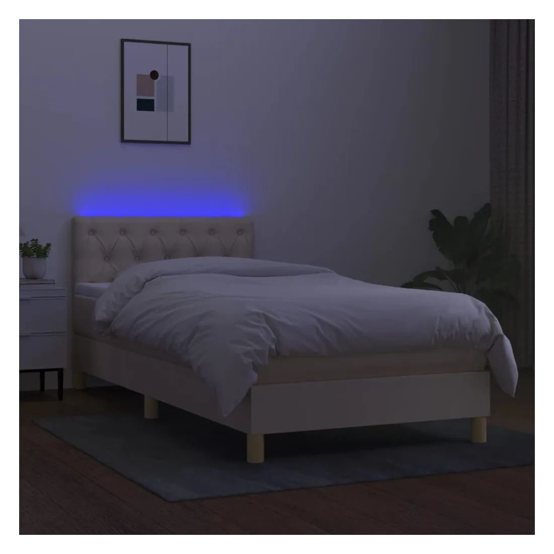 Utilisez ce sommier tapissier avec matelas et LED pour profiter d'un sommeil réparateur ! C'est le point central de votre chambre à coucher. Tissu durable : le tissu présente un aspect simple et épuré, et il est respirant et durable.Tête de lit pratique : la tête de lit est réglable en hauteur selon vos préférences. La tête de lit vous offre un excellent soutien du dos lorsque vous êtes assis dans votre lit pour lire ou regarder la télévision.Bande LED colorée : apportez de l'éclairage dans l'obscurité avec des lumières LED colorées !Matelas à ressorts ensachés : le ressort ensaché individuel intégré est connu pour sa très haute qualité tout en assurant un haut niveau de durabilité et d'adaptabilité. Il peut absorber efficacement le bruit et les chocs causés par les sauts et les rotations.Protège-matelas doux pour la peau : le protège-matelas est recouvert d'un tissu résistant et doux pour la peau, ce qui le rend souple et confortable. Remarque :Pour des raisons d'hygiène, le matelas ne peut pas être retourné si l'emballage est retiré ou ouvert.Chaque produit est livré avec un manuel de montage dans la boîte pour un montage facile.Seule la partie avec un symbole de ciseaux peut être coupée et seule la partie avec l'USB continuera à fonctionner comme avant.Ce produit est doté d'un connecteur USB, mais la source d'alimentation certifiée de USB 5V n'est pas incluse.