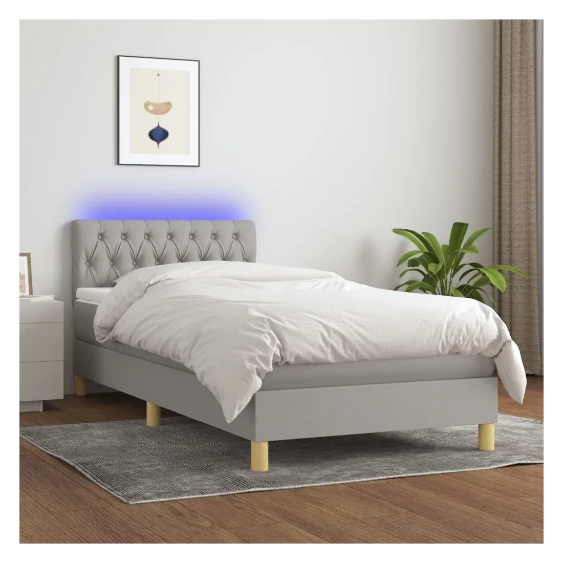 Sommier à lattes de lit matelas LED Gris clair 100x200 cm Tissu