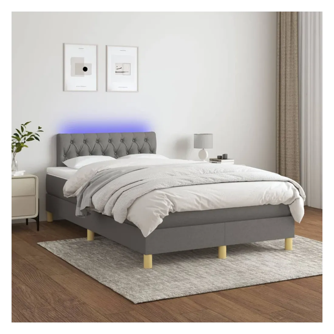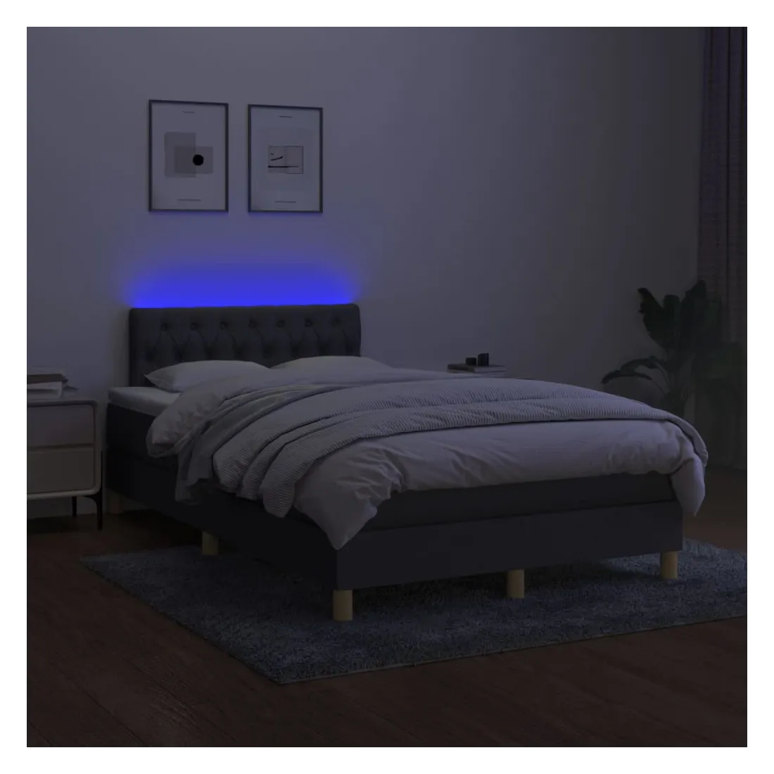 Sommier à lattes de lit et matelas et LED Gris foncé 120x200 cm
